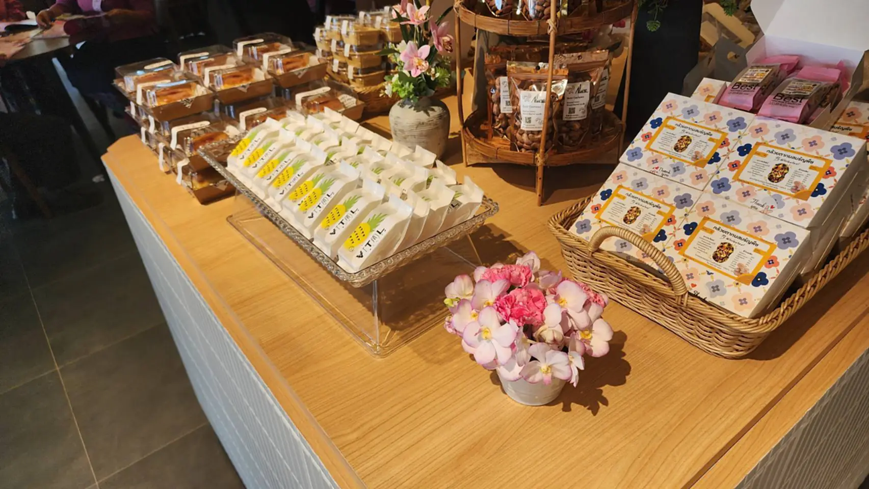 ซึ่งบรรยากาศที่ร้านนั้นเป็นห้องแอร์มี ขนมและเค้กต่างๆหลายชนิดปรุงฝีมือโดยผู้สูงอายุตั้งแต่อายุ 60 ปีไปถึง 80 ปีขึ้นไป