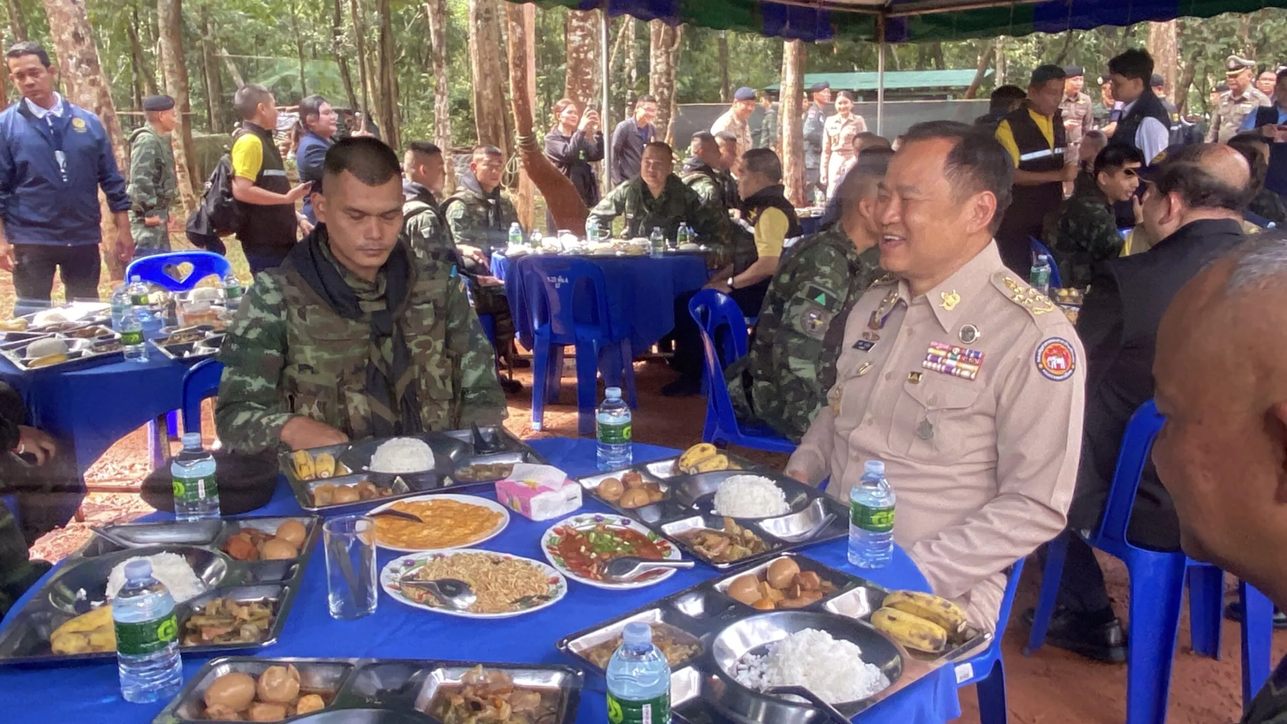 นายกรัฐมนตรี ลงพื้นที่กองพันทหารราบที่ 21 เยี่ยมกำลังพลรักษาความสงบชายแดนไทย-กัมพูชา ก่อนล้อมวงทหารกินมื้อเที่ยงถาดหลุม ตักพะโล้เสิร์ฟ ปลุกใจกำลังพลต้องชนะเท่านั้น ลั่น สะกดคำว่าแพ้ไม่เป็น รับปากจะพากลับบ้านให้เร็วที่สุด นำอธิปไตยไปฝากคนไทย