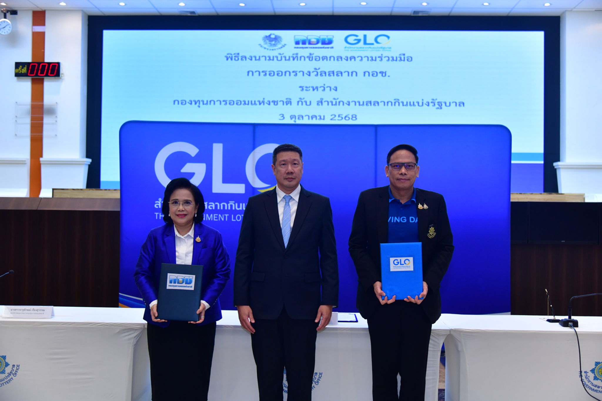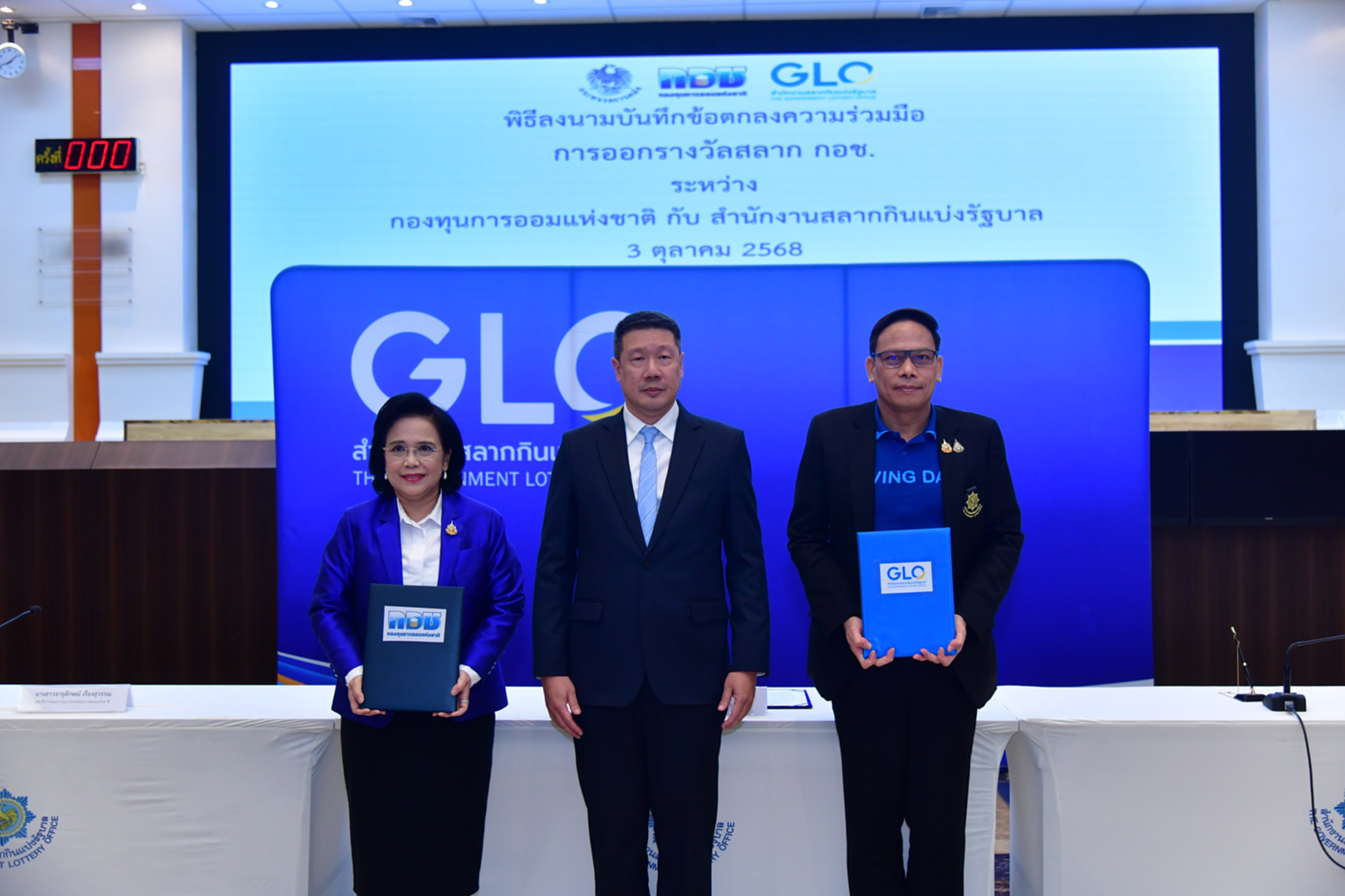 วันที่ 3 ตุลาคม 2568 ที่สำนักงานสลากกินแบ่งรัฐบาล ได้มีการจัดพิธีลงนามบันทึกข้อตกลง ความร่วมมือ (MOU) การออกรางวัล “สลาก กอช.” ระหว่างกองทุนการออมแห่งชาติ (กอช.) โดยนางสาวจารุลักษณ์ เรืองสุวรรณ เลขาธิการคณะกรรมการกองทุนการออมแห่งชาติ และสำนักงานสลาก   กินแบ่งรัฐบาล (GLO) โดย พันโท หนุน ศันสนาคม ผู้อำนวยการสำนักงานสลากกินแบ่งรัฐบาล