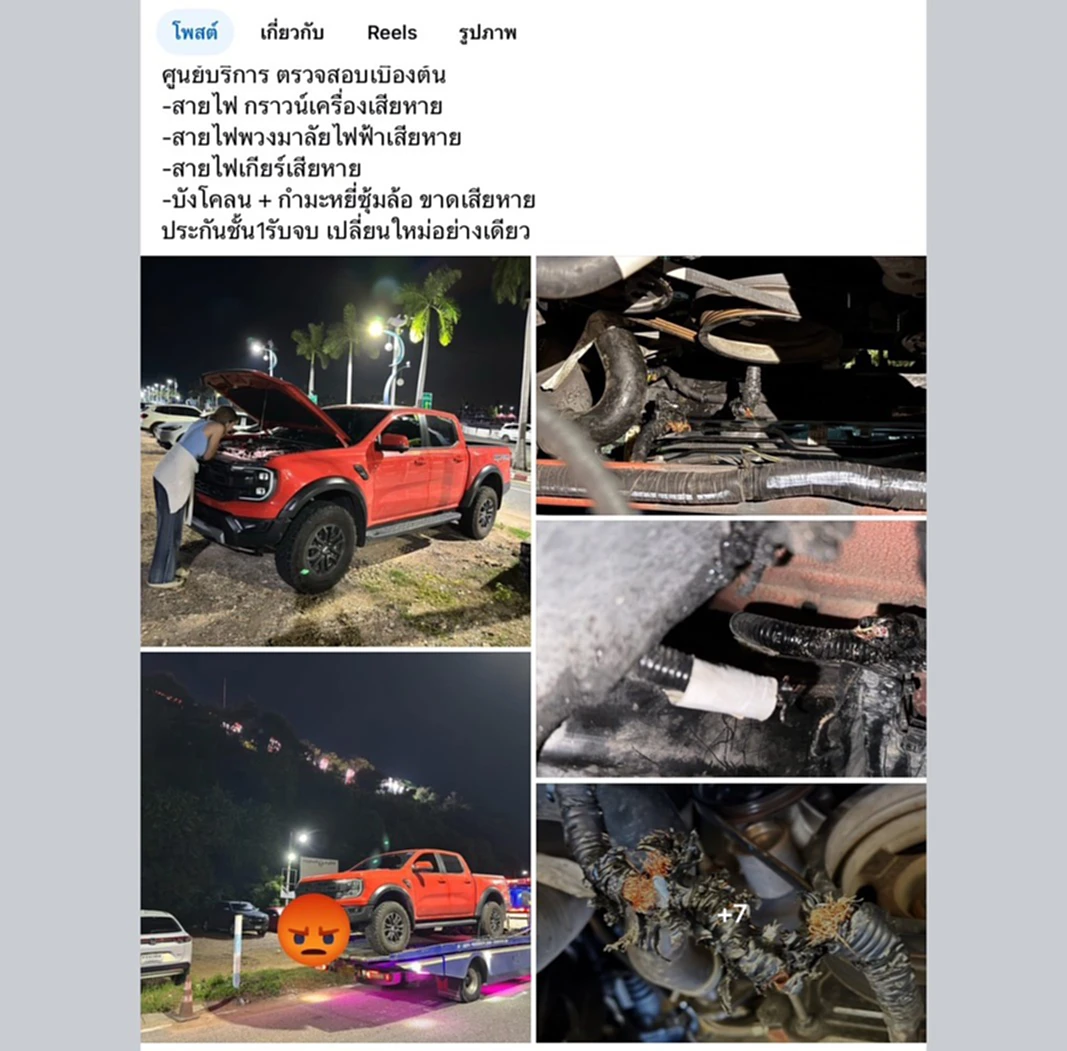 “เตือนภัยหมาจร พัทยา แหลมบาลีฮาย!!! วันที่ 2/10/2025 เวลา 17.00 น. จอดรถไว้จุดรับฝากรถแหลมบาลีฮาย ด้วยความที่รถติดและใกล้เวลาเรือออกแล้ว เลยตัดสินใจจอดรถไว้ที่จุดรับฝากรถที่ใกล้และว่าง ค่าฝากไม่ค้างคืน 100 บาท 23.00 น. ขึ้นจากแพตกหมึก มาถึงที่รถ มีฝูงหมาไม่ต่ำกว่า 10 ตัว วิ่งเล่นกันเต็มลาน ล้อมรถผมอยู่ประมาณ 5-6 ตัว และมีมุดออกมาจากท้องรถผม 1 ตัว (ตัวในคลิปที่ไล่ปีนรถคนอื่น) ก่อนถึงรถได้ตะโกนไล่ฝูงหมาให้หลบ รถเปิดได้ปกติ แต่พอสตาร์ท หน้าจอเด้งโค้ดขึ้นมาเพียบ พวงมาลัยบกพร่อง, เกียร์บกพร่อง, ระบบเบรกบกพร่อง, การออกตัวลาดชันบกพร่อง, การชาร์จบกพร่อง, ระบบเซนเซอร์ต่างๆ บกพร่องอีกเพียบ, เกียร์ไฟฟ้าล็อก เข้าเกียร์ว่างไม่ได้ กว่าจะเอาขึ้นรถสไลด์ได้ทุลักทุเลมาก สไลด์ถึงศูนย์บริการตีสาม 3/10/2025 ศูนย์บริการตรวจสอบเบื้องต้น – สายไฟกราวด์เครื่องเสียหาย, สายไฟพวงมาลัยไฟฟ้าเสียหาย, สายไฟเกียร์เสียหาย, บังโคลน + กำมะหยี่ซุ้มล้อขาดเสียหาย ประกันชั้น 1 รับจบ เปลี่ยนใหม่อย่างเดียว”