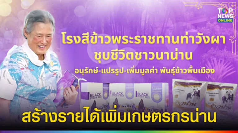 ปัจจุบัน โรงสีข้าวพระราชทานท่าวังผา มีผลผลิตข้าวไม่ต่ำกว่า 10 สายพันธุ์ อาทิ ข้าวก่ำ ข้าวเหนียว ข้าวหอมมะลิ 105 ข้าวแดง ข้าวหอมนิล ข้าวหอมทับทิมชุมแพ ข้าวไรซ์เบอร์รี่ ฯลฯ ที่ดำเนินการครบวงจร ทั้งการรวบรวมผลผลิต การสีข้าว การพัฒนาบรรจุภัณฑ์ การทำตลาดและจำหน่ายผ่านช่องทางตลาด ร้านค้าชุมชน ร้านโอทอป ร้านสะดวกซื้อ ในชุมชน สัดส่วน 60% ส่วนที่เหลือ 40% เป็นการจำหน่ายผ่านช่องทางออนไลน์ โดยมีรายได้ประมาณ 4 ล้านบาทต่อปี จากการจำหน่ายข้าว บริการรับสีข้าว ร้านกาแฟ และการจำหน่ายปัจจัยการผลิต