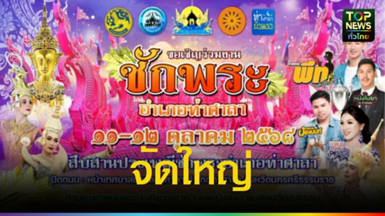วันที่ 3 ต.ค. 2568 ผู้สื่อข่าวรายงานว่าอำเภอท่าศาลา จ.นครศรีธรรมราช กำหนดจัดงาน ประเพณีชักพระอำเภอท่าศาลา ประจำปี 2568 ระหว่างวันที่ 11 ต.ค.– 12 ต.ค. 2568 ณ บริเวณเทศบาลตำบลท่าศาลา เพื่อสืบสานวัฒนธรรมท้องถิ่นและส่งเสริมการท่องเที่ยวเชิงประเพณีภายในงานมีการจัดขบวน รถพนมพระกว่า 20 ลำ พร้อมกิจกรรมหลากหลาย อาทิ ทำบุญรถพนมพระ ชมการแสดงหนังตะลุง การแสดงศิลปวัฒนธรรม และเที่ยวตลาดชุมชน โดยในช่วงจัดงานจะมีการปิดถนนหน้าเทศบาลตำบลท่าศาลา เพื่อรองรับขบวนเรือพระและประชาชนที่เข้าร่วมงาน