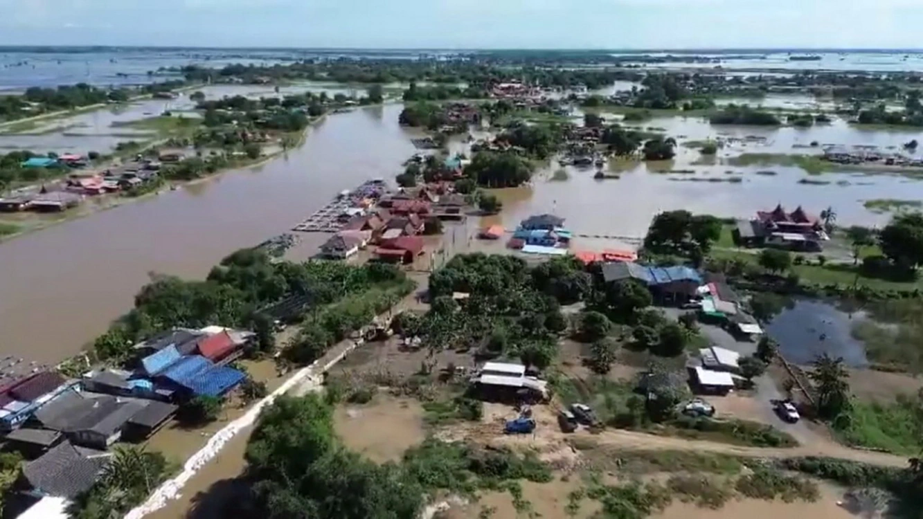 วันที่ 3 ต.ค. 68 ที่บริเวณคันกั้นน้ำ หมู่ที่ 5 ตำบลโผงเผง อำเภอป่าโมก จังหวัดอ่างทอง กระสอบทรายที่ทำเป็นคันกั้นน้ำเกินแรงต้านน้ำในคลองโผงเผง ที่เพิ่มสูงขึ้นอย่างต่อเนื่อง ทำให้กระสอบทรายพังทลายกว้างประมาณ 4 เมตร ทำให้น้ำในคลองโผงเผงไหลทะลักเข้าหมู่บ้านในพื้นที่กว่า 200 หลังคาเรือน อย่างรวดเร็ว ชาวบ้านต่างเร่งขนของหนีน้ำขึ้นไว้ชั้น 2 ของบ้าน ส่วนบ้านชั้นเดียวก็ต้องเร่งขนของขึ้นไปไว้บนถนน เพื่อเป็นที่พักอาศัยชั่วคราว