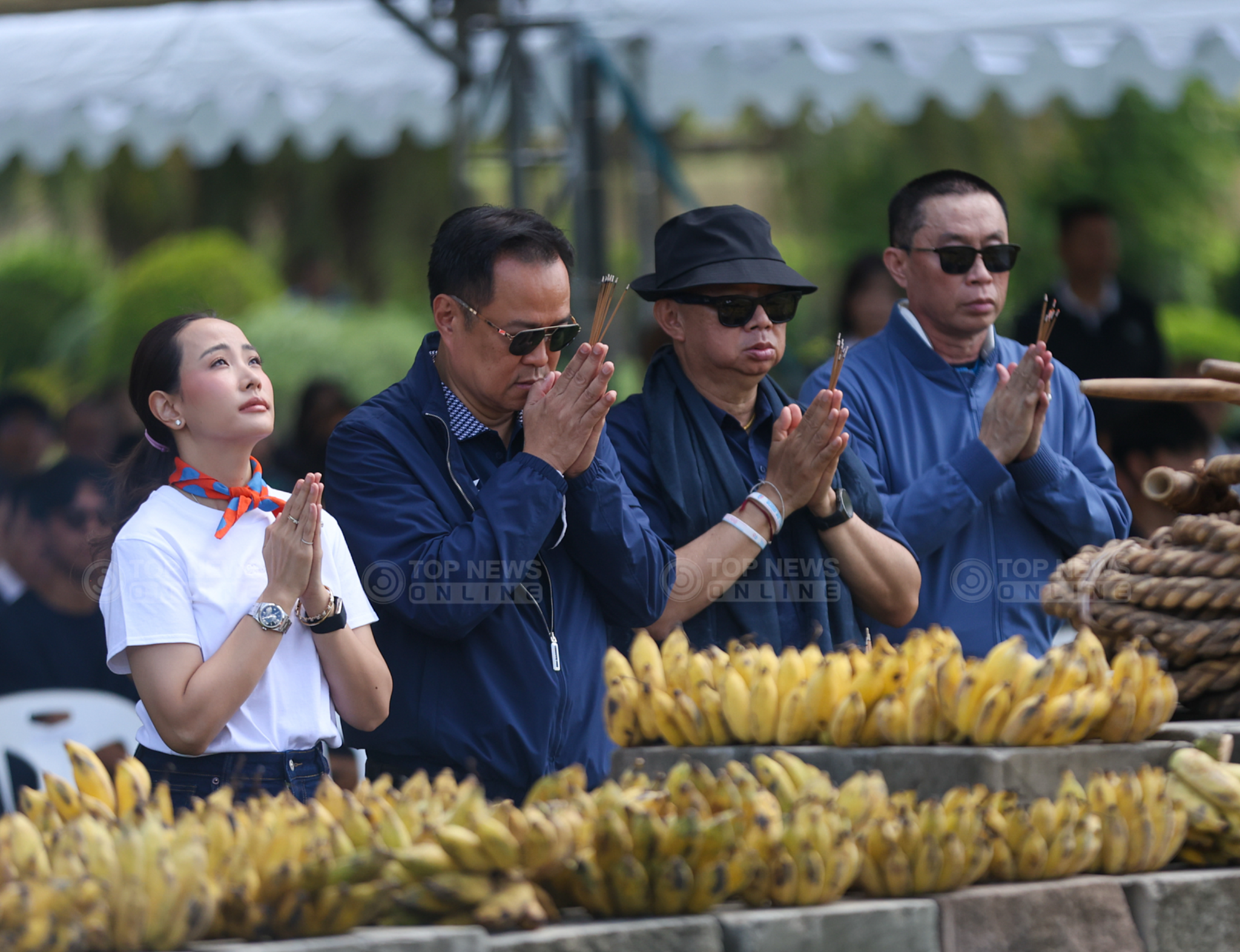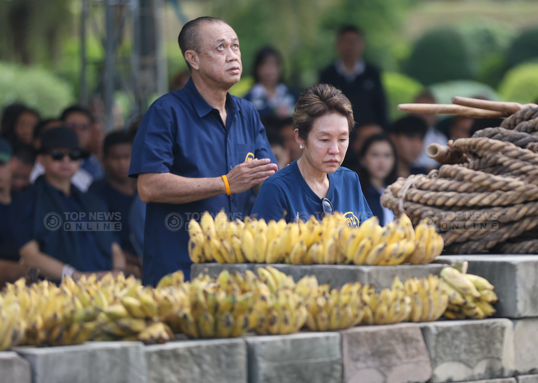 โดยนายเนวิน ได้ขี่รถจักรยานยนต์เวสป้า สีเหลือง เข้ามาบริเวณสถานที่จัดงาน ในเวลา 9.29 น. ก่อนที่จะเข้าสักการะพระศิวะที่บริเวณด้านหน้า พร้อมกับนายไชยชนก ชิดชอบ รัฐมนตรีว่าการกระทรวงดิจิทัลเพื่อเศรษฐกิจและสังคม บุตรชาย นางสาวชิดชนก ชิดชอบ บุตรสาว นายชนน์ชนก ชิดชอบ บุตรชายและนายโชติชนก ชิดชอบ บุตรชาย
