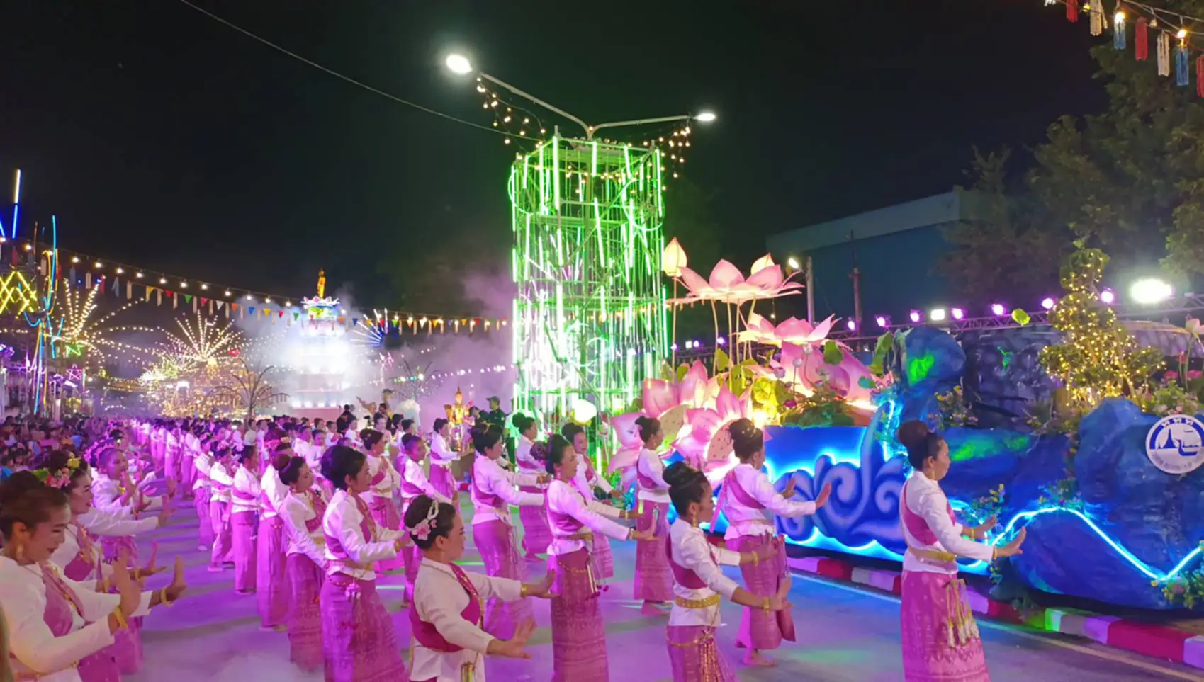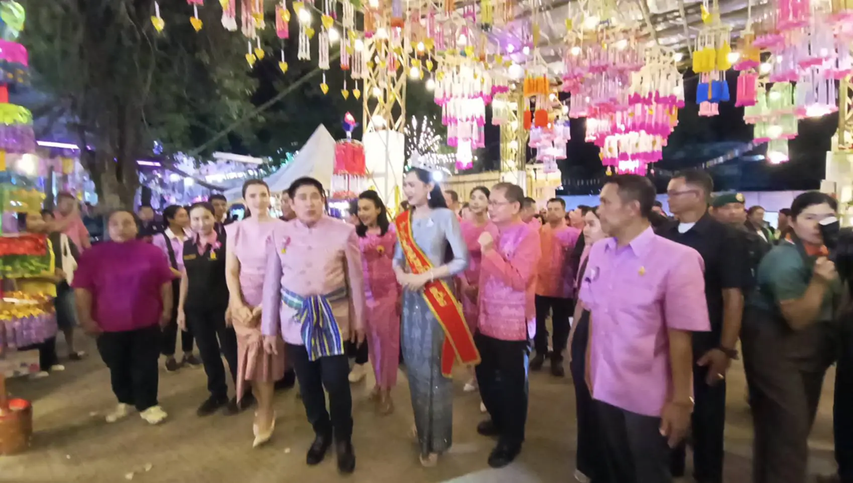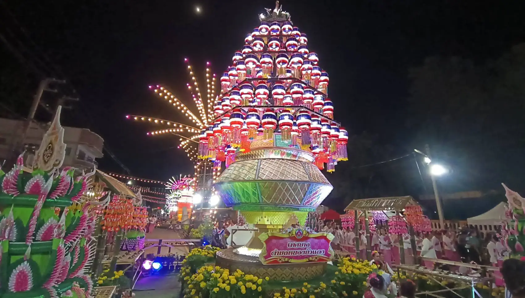 พิ้งกี้ ดาราสาวเชิญพานดอกบัวแด่ รองนายกฯ เปิดงานประเพณีบุญกระธูปสุดยิ่งใหญ่ นักท่องเที่ยวนับหมื่นแห่ชมพิธีและต้นกระธูปสุดคึกคัก