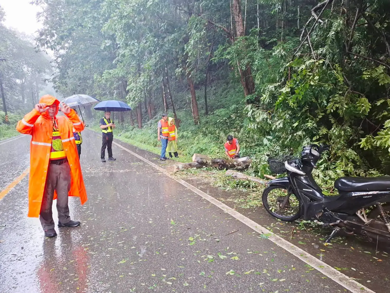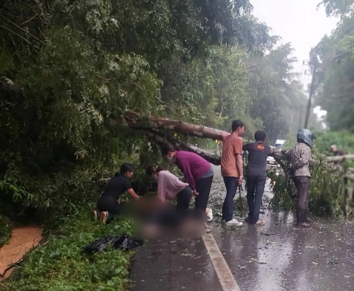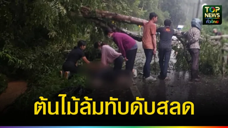 หนุ่ม 34 ซิ่ง จยย.ฝ่าสายฝน ต้นไม้ล้มทับดับสลด