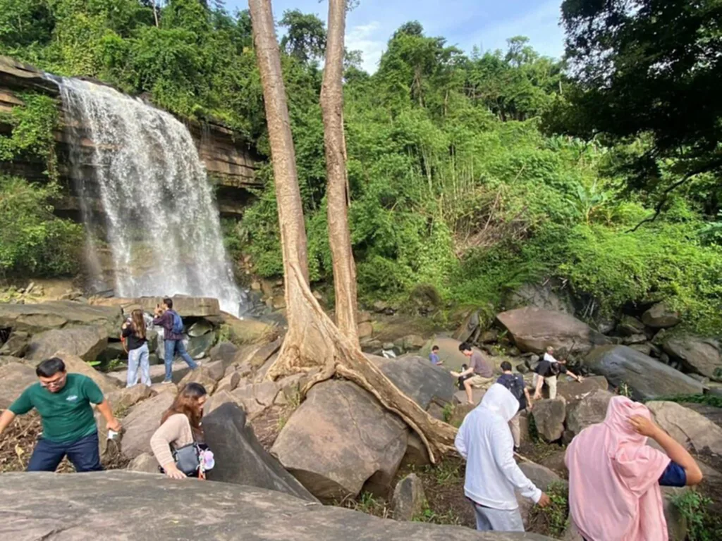 วันที่ 5 ตุลาคม 2568 ที่บริเวณน้ำตกม่านฟ้า อุทยานแห่งชาติทับลาน บ้านสวนห้อม ตำบลวังน้ำเขียว อำเภอวังน้ำเขียว จังหวัดนครราชสีมา ผู้สื่อข่าวรายงานว่า บรรยากาศเต็มไปด้วยความคึกคัก มีนักท่องเที่ยวจากทั่วสารทิศเดินทางมาท่องเที่ยวยังน้ำตกเพื่อชื่นชมความงามในช่วงปลายฝนต้นหนาว ของอุทยานฯ ส่งผลให้มีรถนักท่องเที่ยวเป็นจำนวนมากเดินทางมุ่งเข้าสู่พื้นที่ ทำให้เกิดรายได้กับชุมชนกระตุ้นเศรษฐกิจการท่องเที่ยวในหน้าฝน