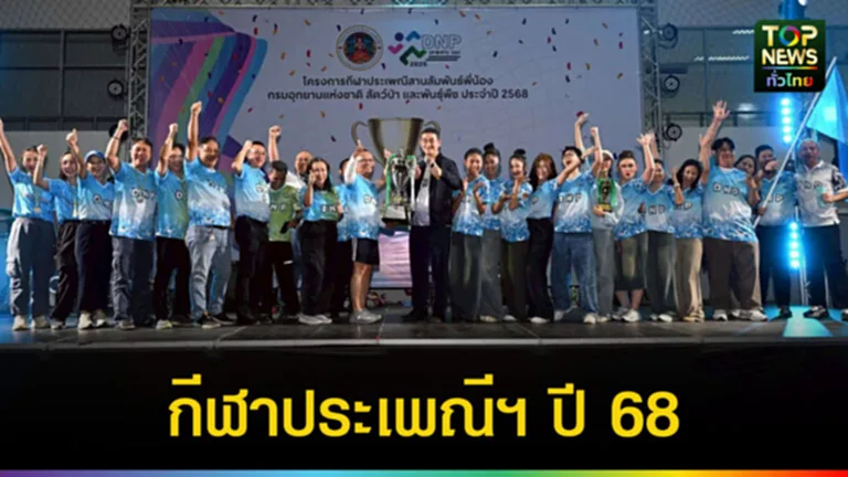 เมื่อวันที่ 4 ตุลาคม 2568 เวลา 18.00 น. กรมอุทยานแห่งชาติ สัตว์ป่า และพันธุ์พืช ประสบความสำเร็จในการจัดการแข่งขัน “กีฬาประเพณีสานสัมพันธ์พี่น้องกรมอุทยานแห่งชาติ สัตว์ป่า และพันธุ์พืช ประจำปี พ.ศ. 2568” ณ อาคาร PAT ARENA การท่าเรือแห่งประเทศไทย โดยมี นายอรรถพล เจริญชันษา อธิบดีกรมอุทยานแห่งชาติ สัตว์ป่า และพันธุ์พืช ให้เกียรติเป็นประธานในพิธีปิด มอบรางวัล และมอบโล่ผู้เกษียณอายุราชการ