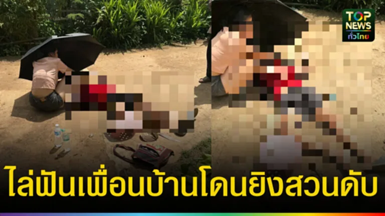ที่เกิดเหตุพบศพ นายรุต (นามสมมุติสงวนนามสกุล) อายุ 33 ปี เพื่อนบ้าน สภาพนอนหงายจมกองเลือดกลางถนน สวมเสื้อยืดสีแดง กางเกงขาสั้นสีดำ ข้างกายมีมีดพร้าขนาดใหญ่ที่ผู้ตายพกติดตัว ตรวจสอบพบถูกยิงเข้าบริเวณลำคอ กระสุนทะลุเสียชีวิตทันที ใกล้กันพบ นายวาท (นามสมมุติสงวนนามสกุล) อายุ 58 ปี เจ้าของบ้าน ให้การรับสารภาพว่าเป็นผู้ยิง โดยใช้อาวุธปืนขนาด .38 สมิทแอนด์เวสสัน (ไม่มีทะเบียน) ยิงสวน 1 นัด หลังผู้ตายถือมีดบุกเข้ามาไล่ฟันถึงหน้าบ้าน โดยอ้างเป็นการป้องกันตัวและบันดาลโทสะ