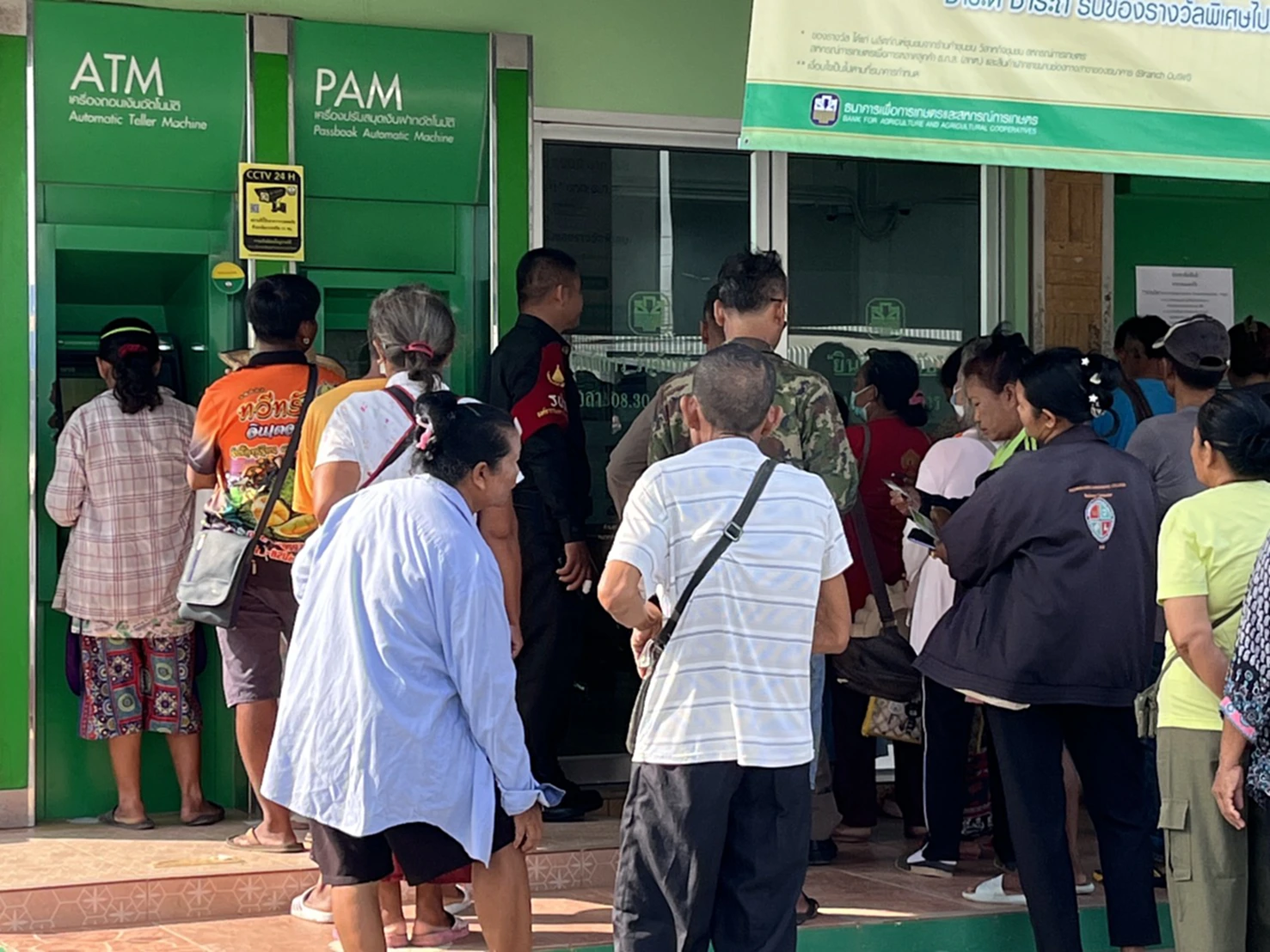 โดยเฉพาะพื้นที่ จ.สุรินทร์ มีจำนวน 147,370 ครัวเรือน พบว่ามีประชาชนในพื้นที่ชายแดนไทย-กัมพูชา และพื้นที่ ที่ได้รับผลกระทบและต้องอพยพดังกล่าว ที่ได้รับเงินโอนผ่านธนาคารออมสิน เดินทางไปกดเงินดังกล่าวกันอย่างคึกคัก โดยเฉพาะที่ธนาคารเพื่อการเกษตรและสหกรณ์การเกษตร สาขาอำเภอพนมดงรัก วันนี้คึกคักมาก มีพี่น้องประชาชนชาวอำเภอพนมดงรัก มาเข้าแถวกดเงินเยียวยา 5,000 บาท โดยมีประชาชนทยอยกันเข้ามากดเงินเป็นระยะระยะ หลายคนบอกว่าดีใจที่วันนี้ได้เงินเยียวยา ก็จะนำเงินจำนวนนี้ไปใช้จ่ายในครอบครัว เพราะช่วงนี้ทำมาหากินลำบาก ทำให้เงินทองขาดมือไม่พอใช้จ่าย เงินเยียวยาก้อนนี้ก็จะพอต่อลมหายใจไปได้อีกระยะหนึ่ง