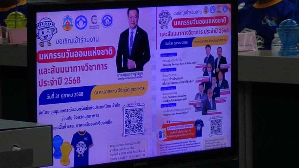 ดร.มะณู บุญศรีมณีชัย ประธานกรรมการชุมนุมสหกรณ์ออมทรัพย์แห่งประเทศไทย จำกัด (ชสอ.) เปิดเผยว่า วันที่ 31 ตุลาคม 2568 เป็นวันออมแห่งชาติ พวกราชุมนุมสหกรณ์ออมทรัพย์แห่งประเทศไทย จำกัด ร่วมกับจังหวัดมุกดาหาร จัดงานวันออมแห่งชาติ มีกิจกรรมเริ่มตั้งแต่ตี 5 ครึ่ง กิจกรรมเดินวิ่ง ปั่น ของผู้ที่มาร่วมงาน เจ้าภาพหลักคือภาคอีสาน 20 จังหวัด จากนั้นก็จมารวมกันที่ศาลากลางจังหวัดมุกดาหาร ในปีนี้พิเศษได้รับเกียรติจาก ฯพณฯ อนุทิน ชาญวีระกุล นายกรัฐมนตรี ได้กรุณามาเป็นประธานในพิธีเปิดมหกรรมวันออมแห่งชาติในปีนี้