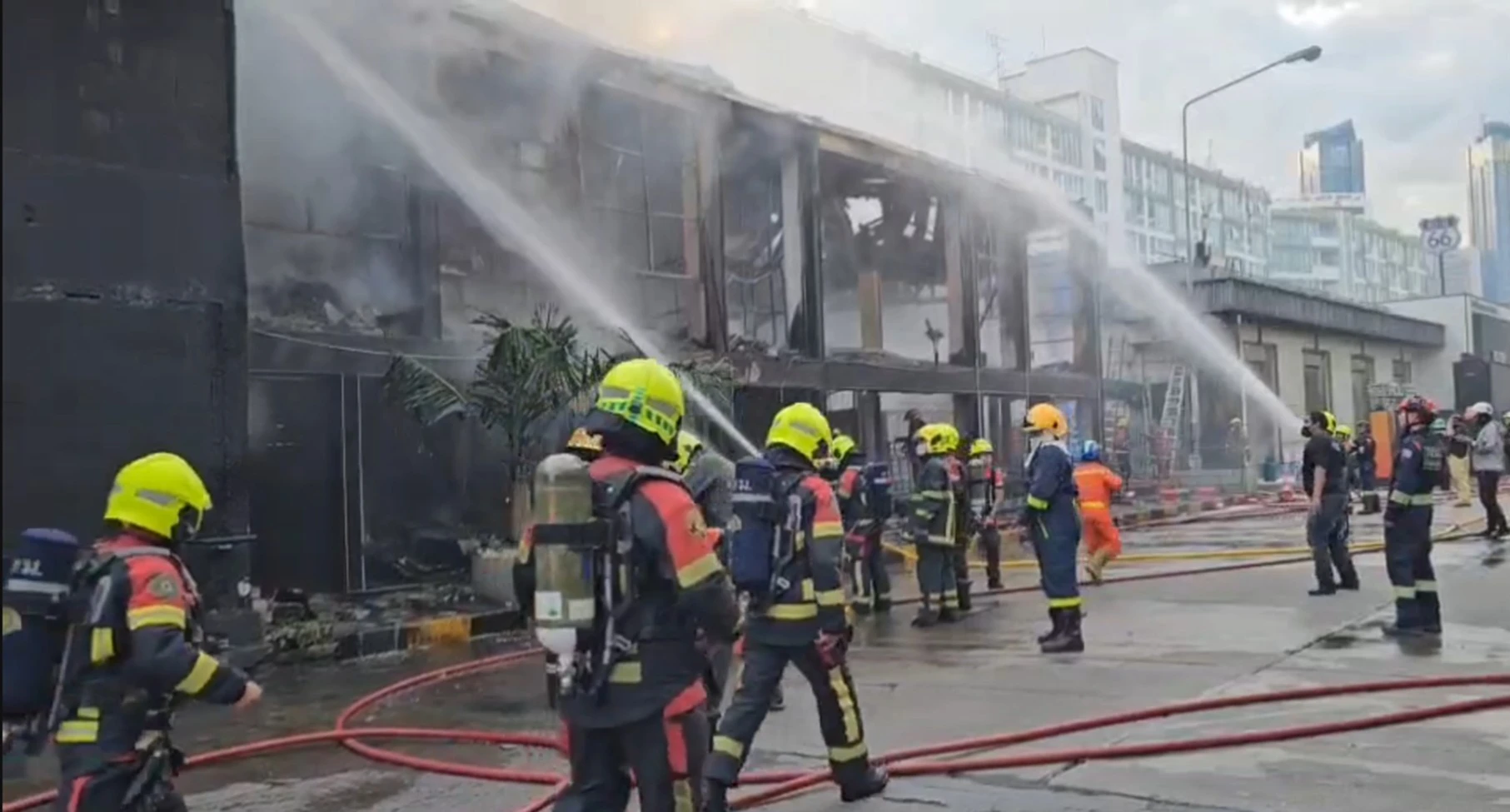 เพลิงไหม้อาคารเห็นของร้าน Route 66 Bangkok ล่าสุดควบคุมสถานการณ์ได้แล้ว แต่ยังคงต้องฉีดน้ำไม่ให้เพลิงปะทุขึ้นอีก เบื้องต้นเจ้าหน้าที่อยู่ระหว่างการตรวจสอบความเสียหายและโครงสร้างอาคาร