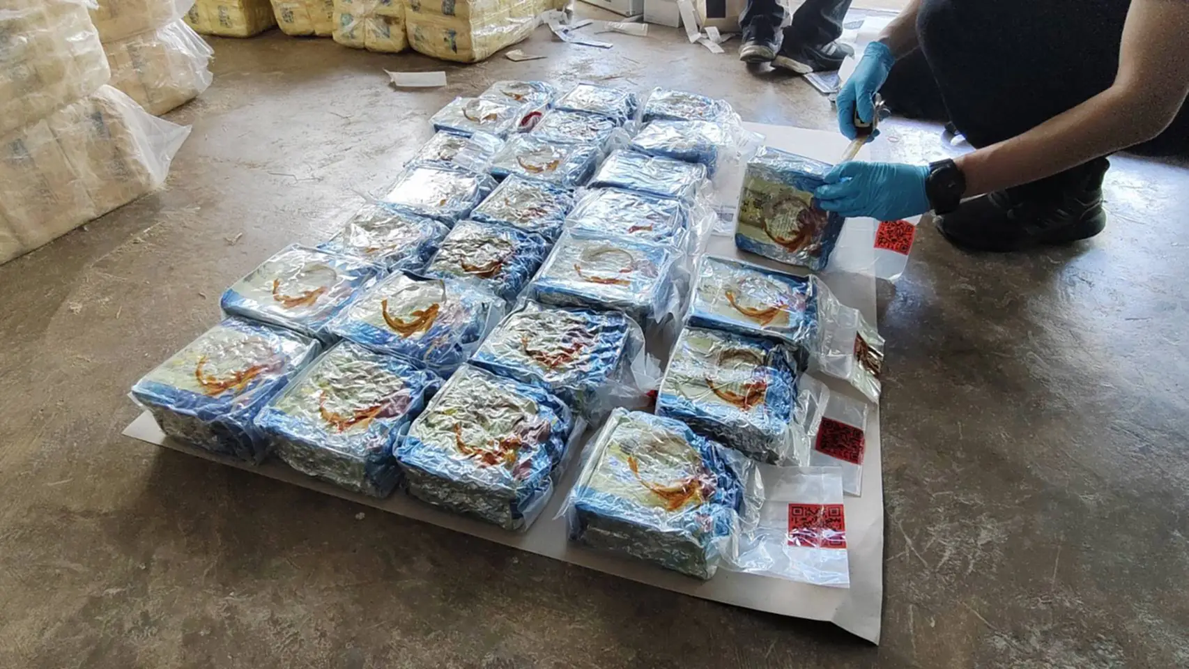โดยรถได้คลุมผ้าใบบริเวณกระบะอย่างมิดชิดเจ้าหน้าที่จึงได้นำรถคันดังกล่าวไปทำการ X-RAY ผลการตรวจสอบพบวัตถุต้องสงสัยคล้ายยาเสพติด ซึ่งมีกระสอบรำข้าวปิดทับไว้ เจ้าหน้าที่ทำการตรวจสอบต่อหน้านายชานนท์ ผู้ขับขี่ พบเป็นยาเสพติดให้โทษประเภท 1 (ยาบ้าหรือเมทแอมเฟตามิน) เม็ดกลมแบนสีส้ม ประทับตรา WY บรรจุในซองพลาสติกสีทึบแสงสีสำเงิน ประมาณ 200 เม็ด ทำเป็นมัด มัดละ 10 ซอง ห่อหุ้มด้วยกระดาษสาสีขาว หุ้มด้วยพลาสติกอีกหนึ่งชั้น ประทับตรา 999 รูปดาว 5 ดวง รวมกันจำนวน 329 ก้อน กับ 4 มัด อยู่ในกระสอบ 29 กระสอบ รวมยาบ้า 3,298,000 เม็ด และยาเสพติดให้โทษประเภท 1 (ยาบ้าหรือเมทแอมเฟตามิน) ) เม็ดกลมแบนสีส้ม ประทับตรา WY บรรจุในซองพลาสติกสีทึบแสงสีสำเงิน ประมาณ 200 เม็ด ทำเป็นมัด มัดละ 10 ซอง รห่อหุ้มด้วยกระดาษสาสีขาว หุ้มด้วยพลาสติกอีกหนึ่งชั้น ประทับตตรา 999 รูปดาว 5 ดวง รวมกันจำนวน 320 ก้อน อยู่ในกระสอบ 29 กระสอบ รวมยาบ้า 3,200,000 เม็ด และยาเสพติดให้โทษประเภท 1 (ไอซ์หรือเมทแอมเฟตามีน) ชนิดเกล็ดผงสีขาวชุ่น บรรจุในห่อชาสีน้ำเงิน-ทอง น้ำหนักห่อละประมาณ 1 กิโลกรัม จำนวน 25 ห่อ น้ำหนักรวม 25 กิโลกรัม รวมของกลาง ยาบ้า 6,498,00 เม็ด ยาไอซ์ 25 กิโลกรัม