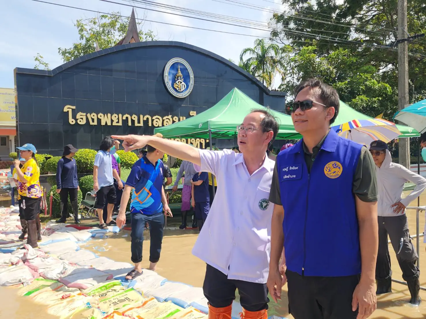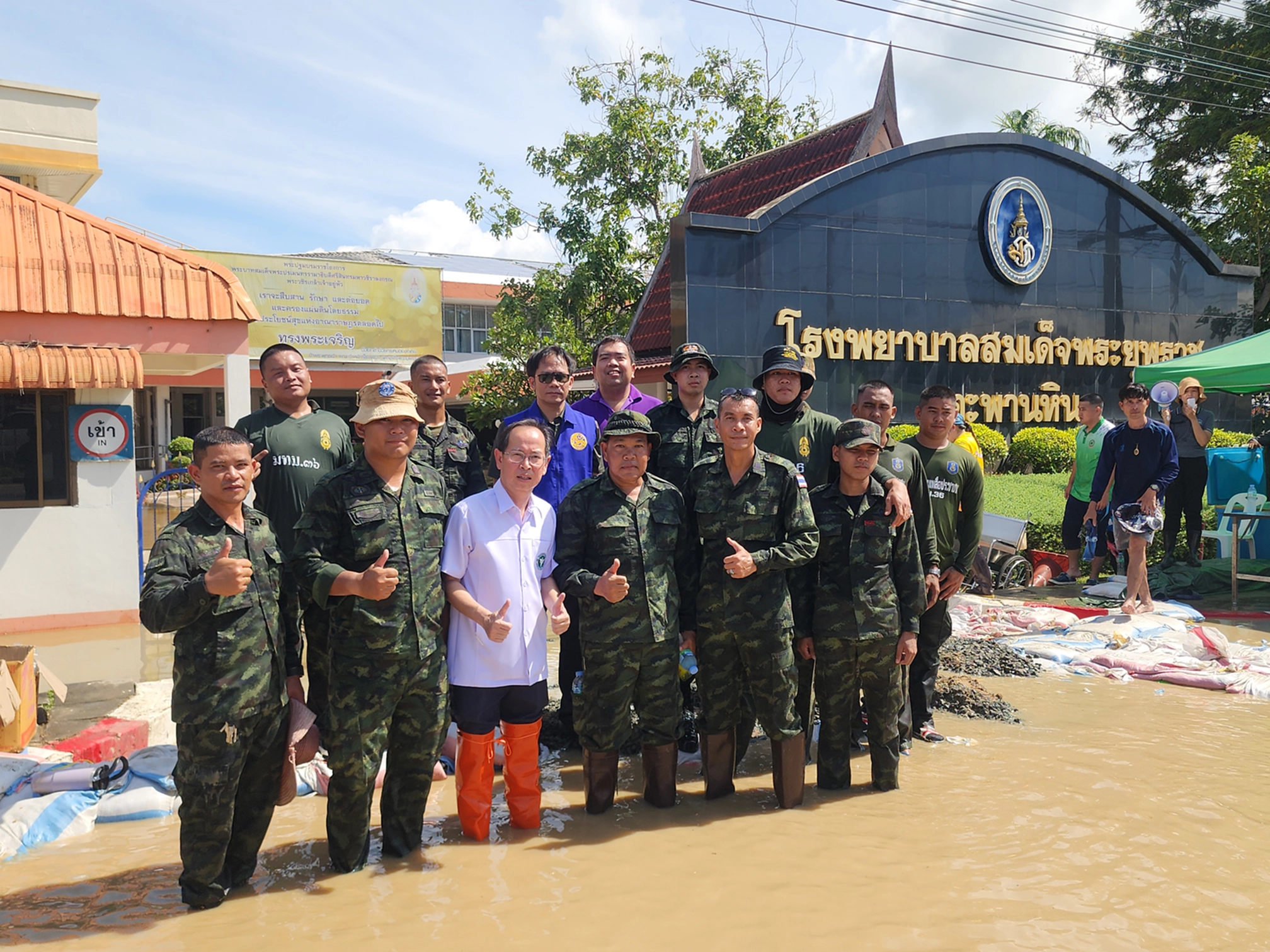 วันที่ 6 ตุลาคม 2568 นายแพทย์วิศิษฏ์ อภิสิทธิ์วิทยา นายแพทย์สาธารณสุขจังหวัดพิจิตร และ นพ.กิตติกุล ปิตะวชิรกุล ผอ.รพ.ยุพราชตะพานหิน รวมถึงเจ้าหน้าที่แพททย์-พยาบาล ของ รพ.สมเด็จพระยุพราชตะพานหิน ต่างระดมแรงงานช่วยกันจัดวางเรียงกระสอบทรายเพื่อปกป้องโรงพยาบาล ไม่ให้ถูกน้ำท่วมตั้งแต่เมื่อคืนที่ผ่านมาจนถึงเช้าวันนี้ สาเหตุเนื่องจากระดับน้ำในแม่น้ำน่านที่ไหลผ่านตลาดเทศบาลเมืองตะพานหินมีน้ำล้นตลิ่งสูงประมาณ 50 – 60 เซนติเมตร แผ่กระจายท่วมชุมชนที่อยู่ริมแม่น้ำน่าน ได้รับผลกระทบแล้วหลายร้อยหลังคาเรือน รวมถึงเขื่อนพนังกั้นน้ำริมแม่น้ำน่านที่หมู่ 5 ต.งิ้วราย อ.ตะพานหิน ได้แตกลง ทำให้น้ำไหลเข้าที่อยู่ของราษฎรที่มีบ้านเรือนอยู่ริมน้ำ