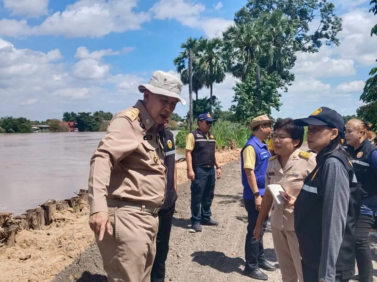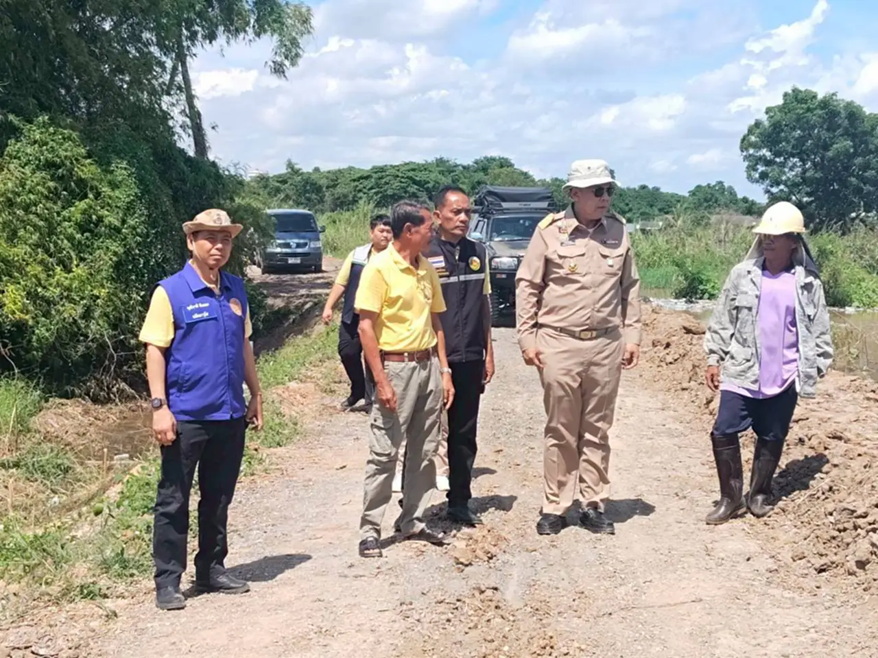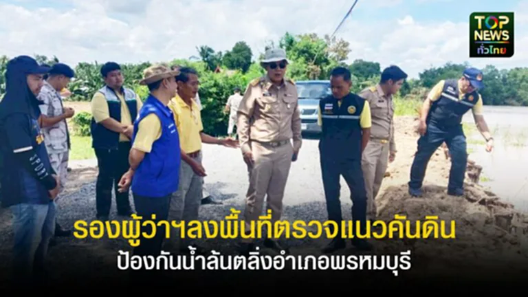 รองผู้ว่าสิงห์บุรี ลงพื้นที่ตรวจแนวคันดินป้องกันน้ำล้นตลิ่งอำเภอพรหมบุรี