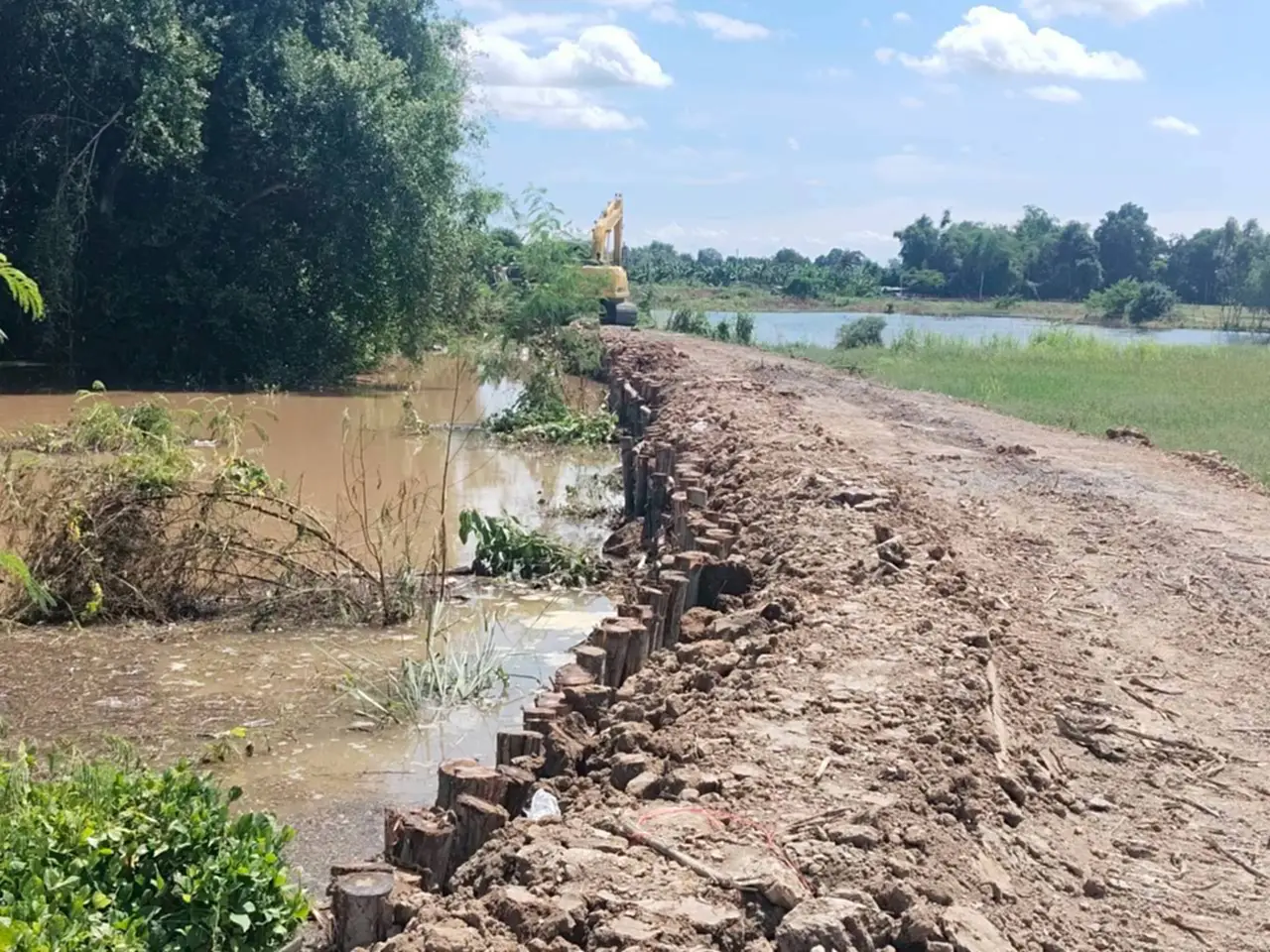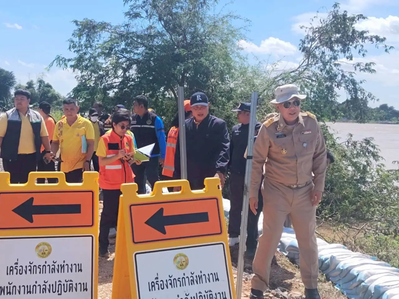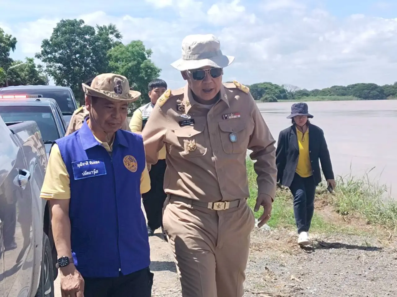 รองผู้ว่าสิงห์บุรี ลงพื้นที่ตรวจแนวคันดินป้องกันน้ำล้นตลิ่งอำเภอพรหมบุรี