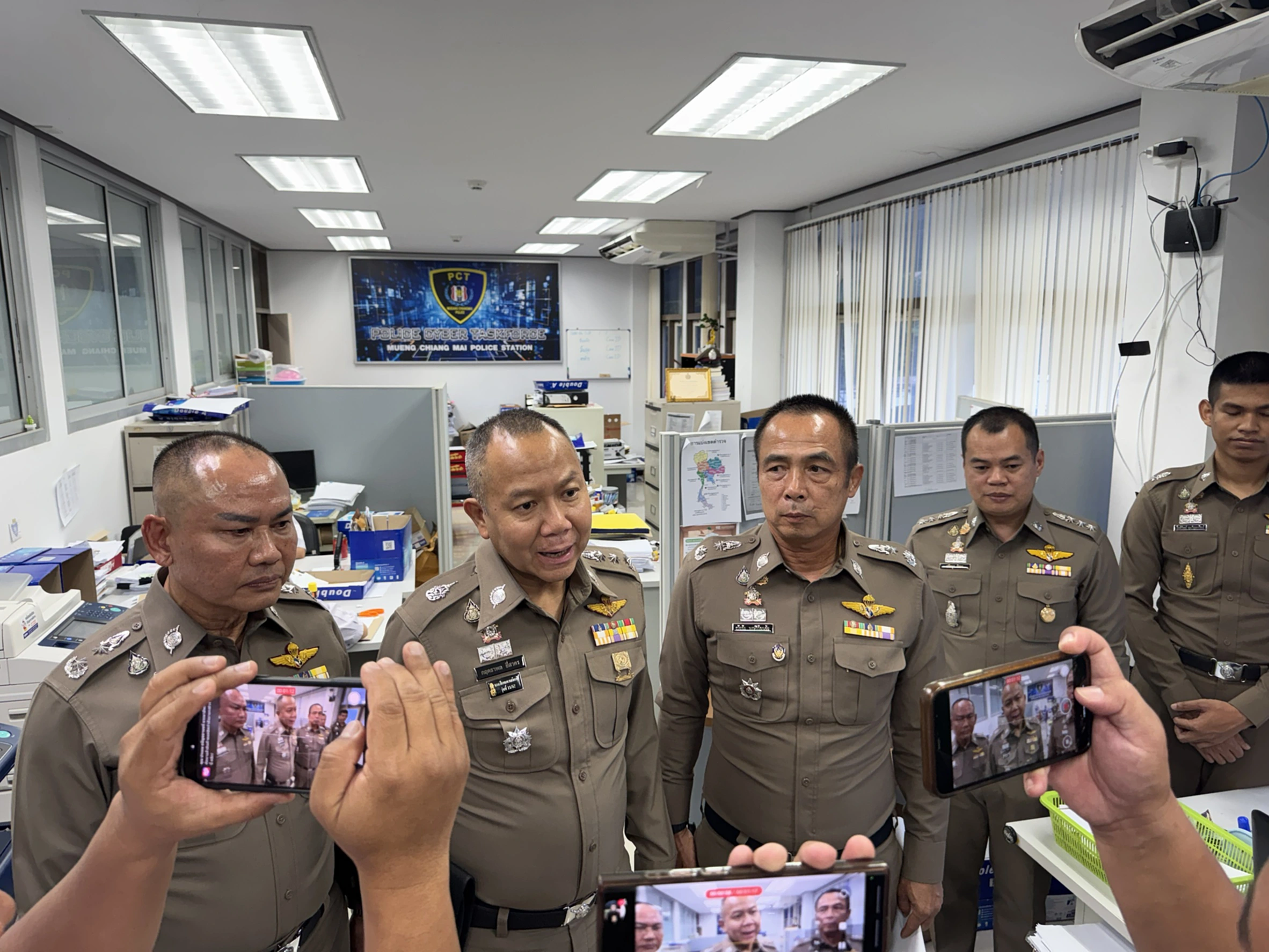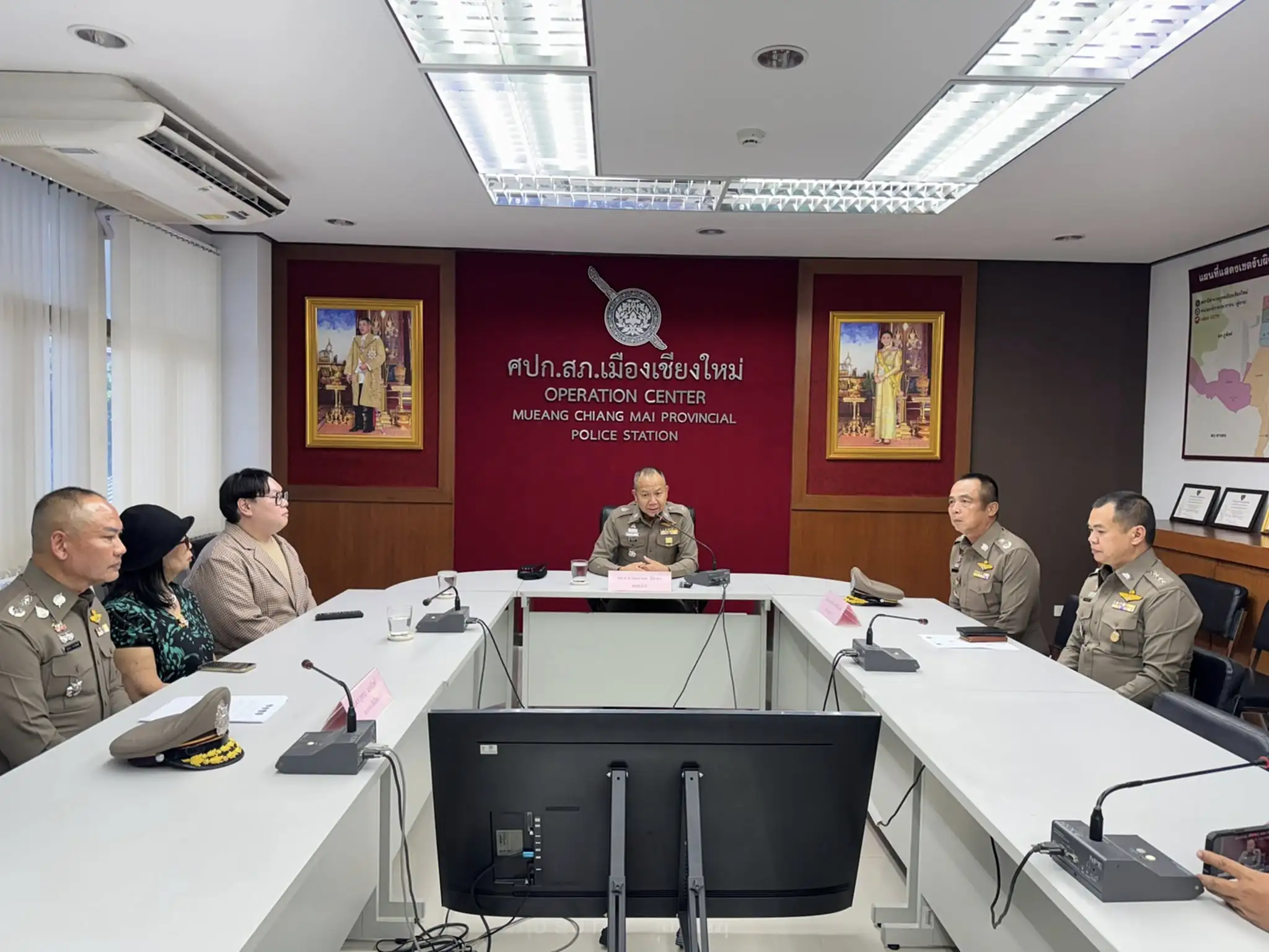 โดยมี พล.ต.ต.ธวัชชัย พงษ์วิวัฒนชัย รอง ผบช.ภ.5, พล.ต.ต.ยุทธนา แก่นจันทร์ ผบก.ภ.จว.เชียงใหม่, และ ผกก.สภ.เมืองเชียงใหม่ ร่วมแถลงผลการจับกุม ณ ห้อง ศปภ.สภ.เมืองเชียงใหม่ อ.เมืองเชียงใหม่ จว.เชียงใหม่