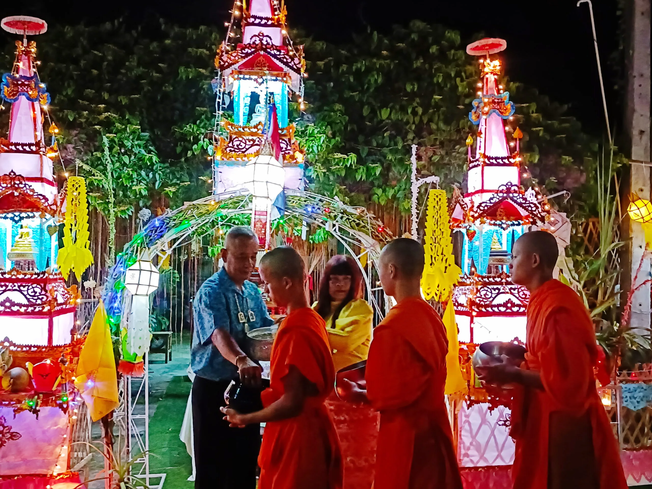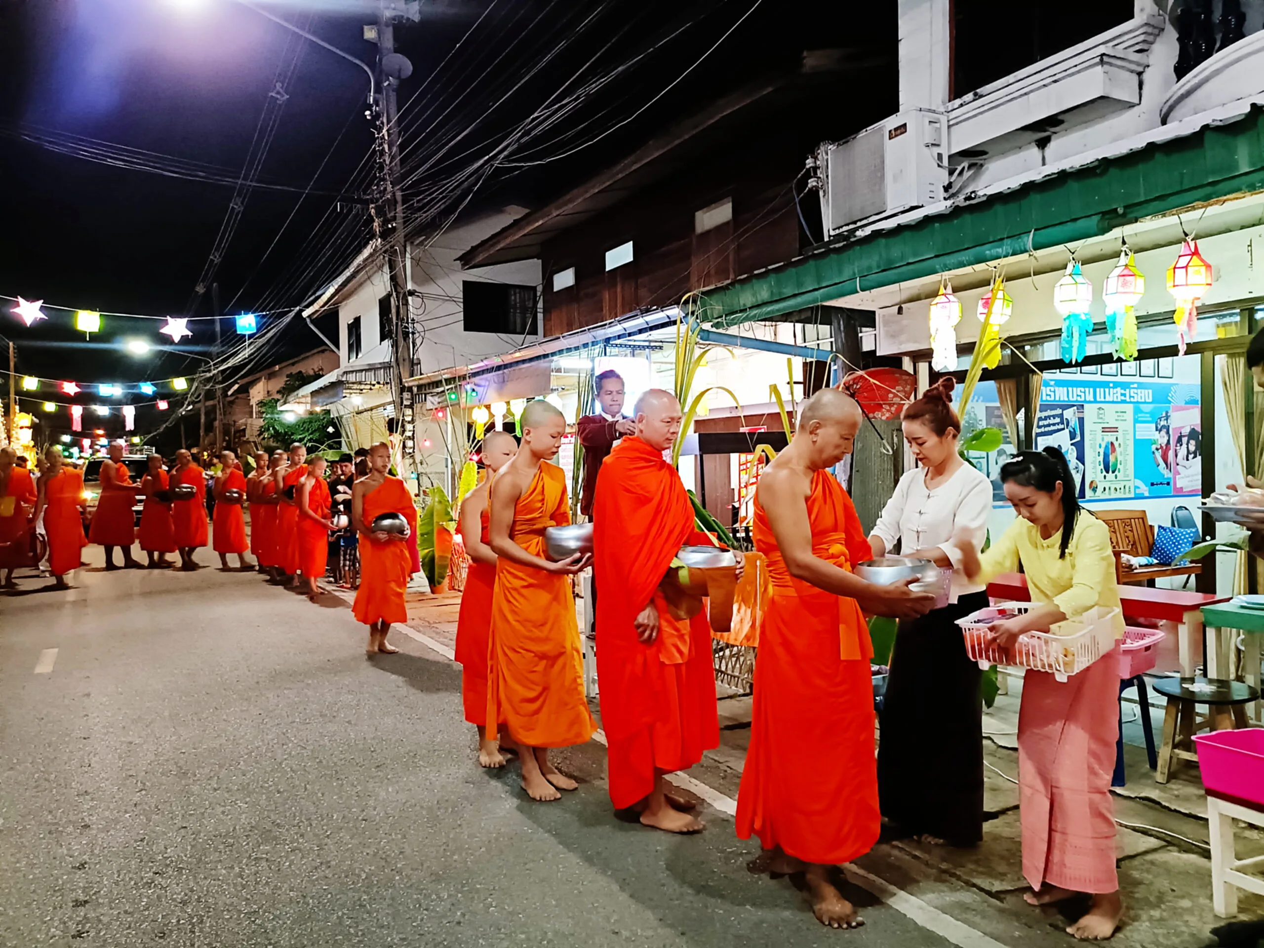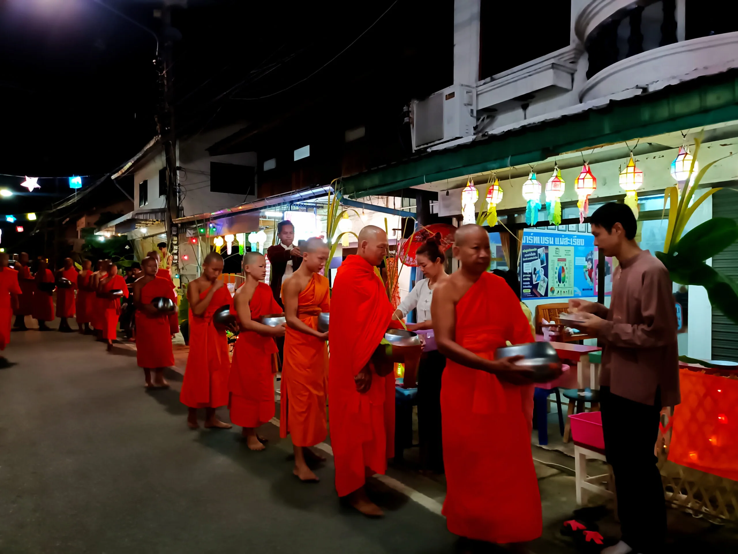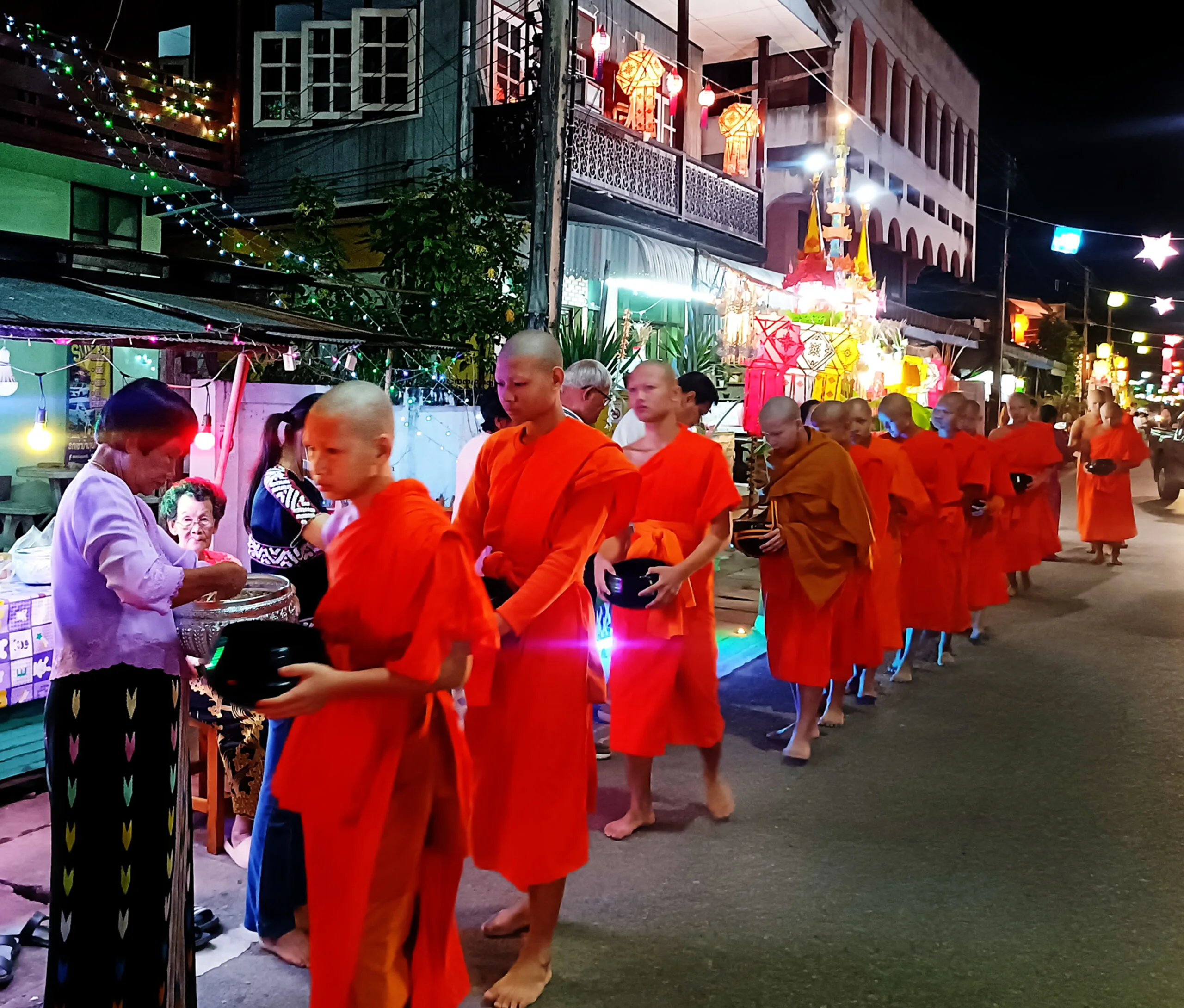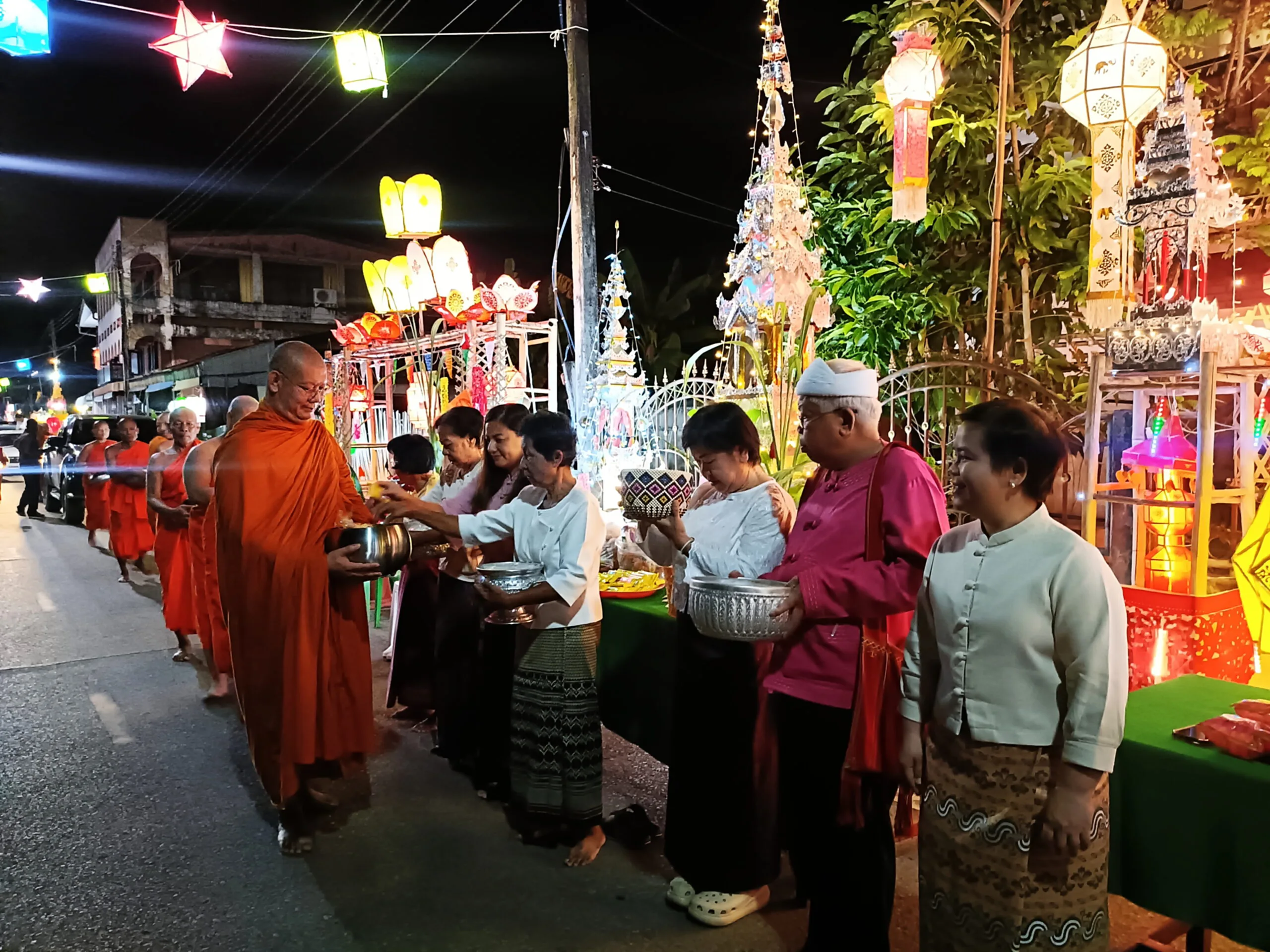 ผู้สื่อข่าวรายงานว่า ช่วงเช้ามืดวันนี้ (7 ตุลาคม 2568) ประชาชนชาวอำเภอแม่สะเรียง พร้อม ครอบครัว ออกมาทำบุญตักบาตรกันอย่างคึกคักในช่วงเทศกาลประเพณีออกหว่า (ออกพรรษา) ซึ่งจัดขึ้นเป็นเวลา 3 วัน โดยเริ่มตักบาตรกันตั้งแต่เช้ามืดเวลาประมาณ 04.00 น. โดยมีพระภิกษุสามเณรกว่า 200 รูป ออกรับบิณฑบาตตามเส้นทางต่างๆ ในอำเภอ ซึ่งวันนี้เป็นวันที่สอง ของการตักบาตรข้าวสารอาหารแห้ง โดยมี นางสาวกมลลักษณ์ บุญซื่อ วัฒนธรรมจังหวัดแม่ฮ่องสอน พร้อมด้วย นายประเสริฐ ประดิษฐ์ ประธานสภาวัฒนธรรมจังหวัดแม่ฮ่องสอน ร่วมกิจกรรมในเช้าวันนี้