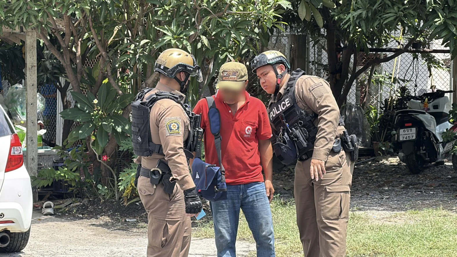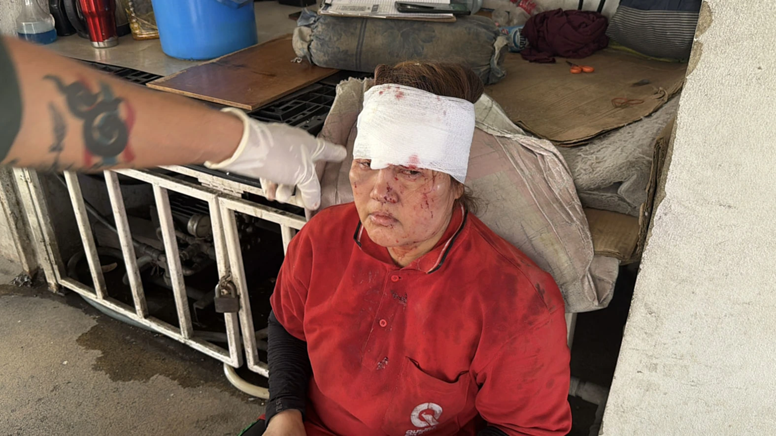 ที่เกิดเหตุภายในร้านล้างรถ พบผู้ได้รับบาดเจ็บเป็นหญิง 1 ราย ทราบชื่อภายหลังคือนางทาทาอู อายุ 50 ปี สัญชาติเมียนมา มีบาดแผลแตกฉีกบริเวณหน้าผาก 2 แผล และใบหน้าปูดบวมหลายแห่ง เจ้าหน้าที่อาสาสมัครมูลนิธิร่วมกตัญญู ได้ให้การปฐมพยาบาลก่อนนำส่งโรงพยาบาลสมุทรปราการ ส่วนผู้ก่อเหตุคือนายปอ เมี๊ยะ จอ อายุ 29 ปี สัญชาติเมียนมา พนักงานล้างรถของร้านดังกล่าว ยืนรอมอบตัวอยู่ในที่เกิดเหตุ