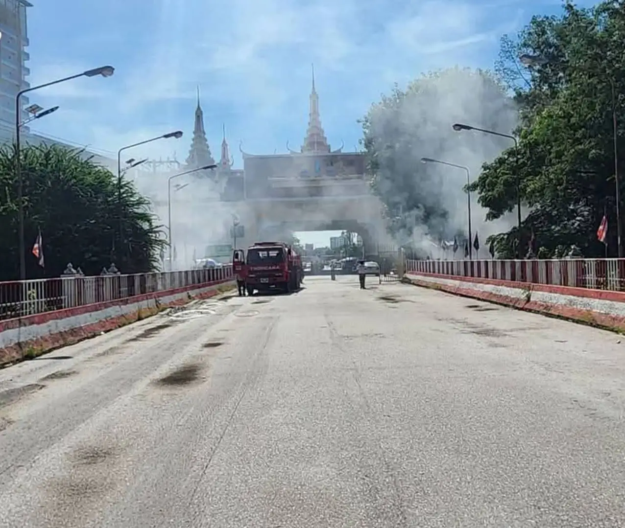 ทั้งนี้ ผู้สื่อข่าวรายงานว่า เจ้าหน้าที่ดับเพลิงกัมพูชา ได้ระดมรถดับเพลิง 2 คันเข้าฉีดน้ำสกัด ซึ่งใช้เวลาประมาณ 30 นาที จึงสามารถควบคุมเพลิงได้ในวงจำกัด เบื้องต้น พบว่าใต้สะพานมีขยะจำนวนมากที่เป็นวัตถุไวไฟ ซึ่งเจ้าหน้าที่คาดว่า อาจมีคนจุดไฟเผาขยะแล้วเกิดลุกลาม แต่ก็ไม่ตัดความเป็นไปได้ว่า อาจมี มือดี ตั้งใจจุดไฟเผา เพราะจุดเกิดเหตุอยู่ในพื้นที่อ่อนไหว บริเวณชายแดนไทยกัมพูชา ที่มักมีการเคลื่อนไหวของกลุ่มต่าง ๆ อยู่บ่อยครั้ง