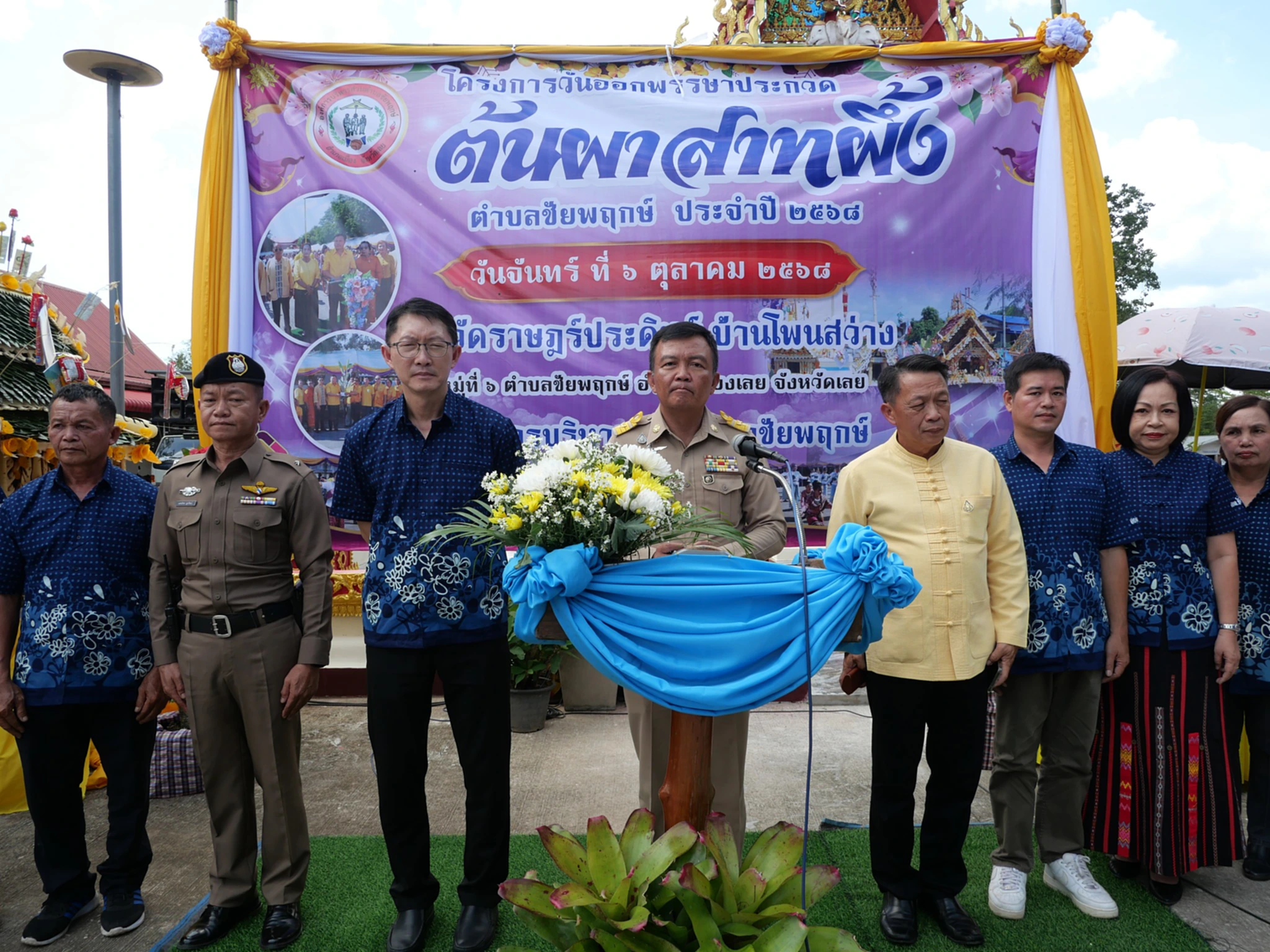 เมื่อเวลา13.00 น.วันที่ 6 ตุลาคม 2568 งาน ที่วัดราษฎร์ประดิษฐ์ บ้านโพนสว่าง หมู่ 6 ตำบลชัยพฤกษ์ อำเภอเมือง จังหวัดเลย นายกิตติคุณ บุตรคุณ รองผู้ว่าราชการจังหวัดเลย เป็นประธานเปิดงานวันออกพรรษา ประกวดต้นผาสาทผึ้ง ประจำปี 2568 โดยมี สส.เลิศศักดิ์ พัฒนชัยกุล สส.เลย เขต 1 นายประชา แสนกลาง นายอำเภอเมืองเลย นายทินกร เกษเกษร นายกองค์การบริหารส่วนตำบลชัยพฤกษ์ พร้อมคณะผู้บริหาร สมาชิกสภา พนักงานเจ้าหน้าที่ และผู้นำหมู่บ้าน ร่วมให้เกียรติในการเปิดงาน
