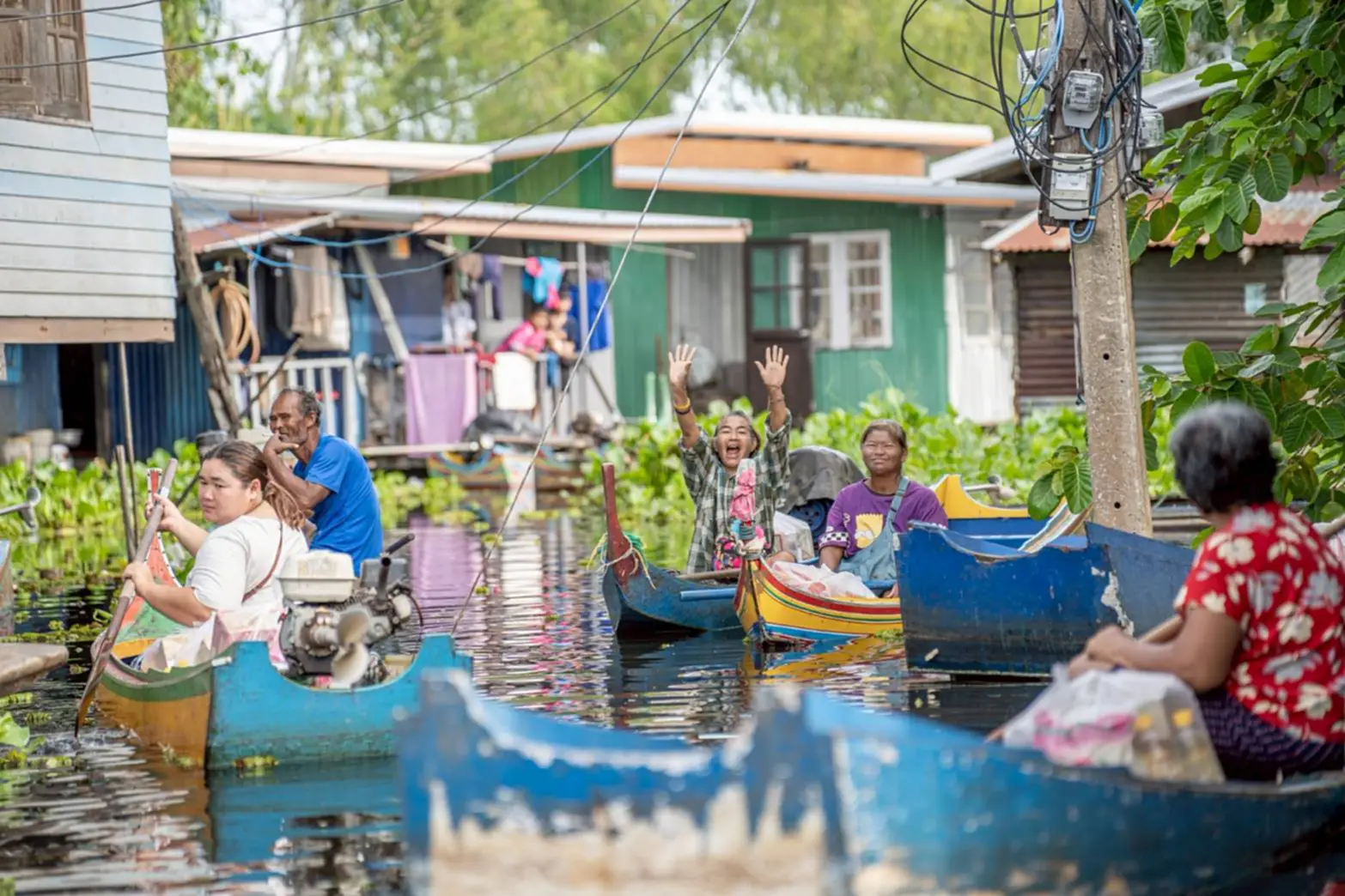 หมู่บ้านถูกน้ำล้อมรอบ นายก อบจ.นครสวรรค์ นำทีมลงเรือมอบถุงยังชีพ