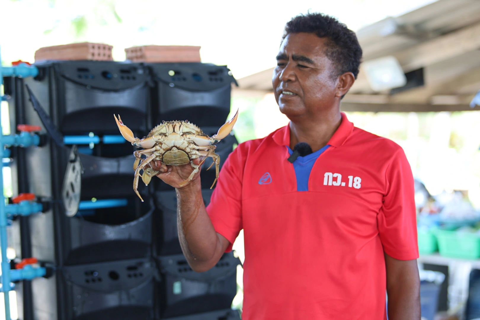 ทั้งนี้ นายณัฏฐชัยยังระบุว่า วิธีการเลี้ยงปูขาวของกลุ่มฯ ใช้ระบบหลากหลาย ทั้งแบบกึ่งปิด กึ่งเปิด และในบ่อธรรมชาติ โดยเฉลี่ยปล่อยลูกปูประมาณ 800 ตัวต่อไร่ ซึ่งสามารถควบคุมค่า FCR (Food Conversion Ratio) ได้ดี โดยใช้ปลาหมอคางดำ 4 กิโลกรัม จะได้เนื้อปู 1 กิโลกรัม ฝากถึงเกษตรกรที่อาจยังกังวลต่อการใช้ปลาหมอคางดำว่า หากดำเนินการตามคำแนะนำด้านการแช่แข็งก่อนนำมาใช้เป็นอาหาร จะไม่เกิดปัญหาการแพร่พันธุ์ในบ่อเลี้ยงแน่นอน อีกทั้งยังสามารถลดต้นทุน และช่วยเพิ่มรายได้แก่ชาวบ้านที่นำปลามาขาย ถือเป็นการพลิกวิกฤตให้เป็นโอกาสอย่างแท้จริง.