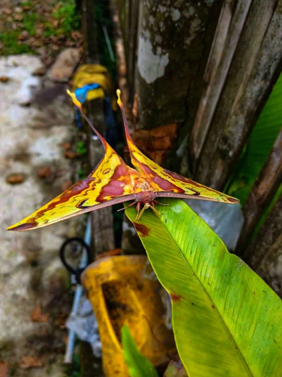 วันที่7ตค. นาย อรรถพงษ์ เภ่าอ่อน หน. อุทยานแห่งชาติแก่งกระจาน จังหวัดเพชรบุรี เปิดเผยว่าได้รับรายงานจาก นายณัฐพล ฤทธิ์น้อย เจ้าหน้าที่หน่วยพิทักษ์อุทยานแห่งชาติที่ กจ.19 (เขาพะเนินทุ่ง) ขณะปฏิบัติหน้าที่ได้พบเจอผีเสื้อที่บนลานกางเต็นท์พะเนินทุ่ง ซึ่งเป็นผีเสื้อที่พบเจอยากมาก ไม่ค่อยได้พบเจอมาก่อน มีลักษณะ “ผีเสื้อหางยาว ตาเคียวปีกลายหยัก ซึ่งจากการตรวจสอบพบว่าเป็นเป็นผีเสื้อกลางคืน หรือมอทหางยาวตาเคียวปีกลายหยัก Moon Moth. มีชื่อไทย มอทหางยาวตาเคียวปีกลายหยัก