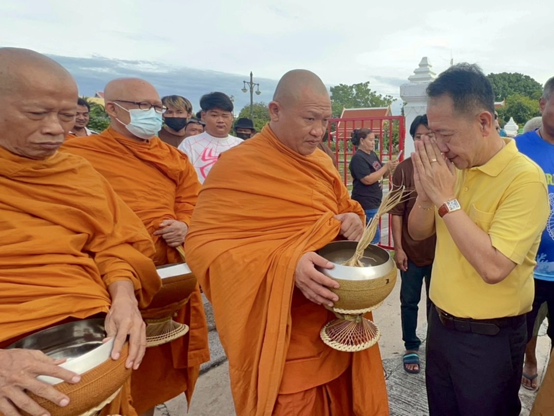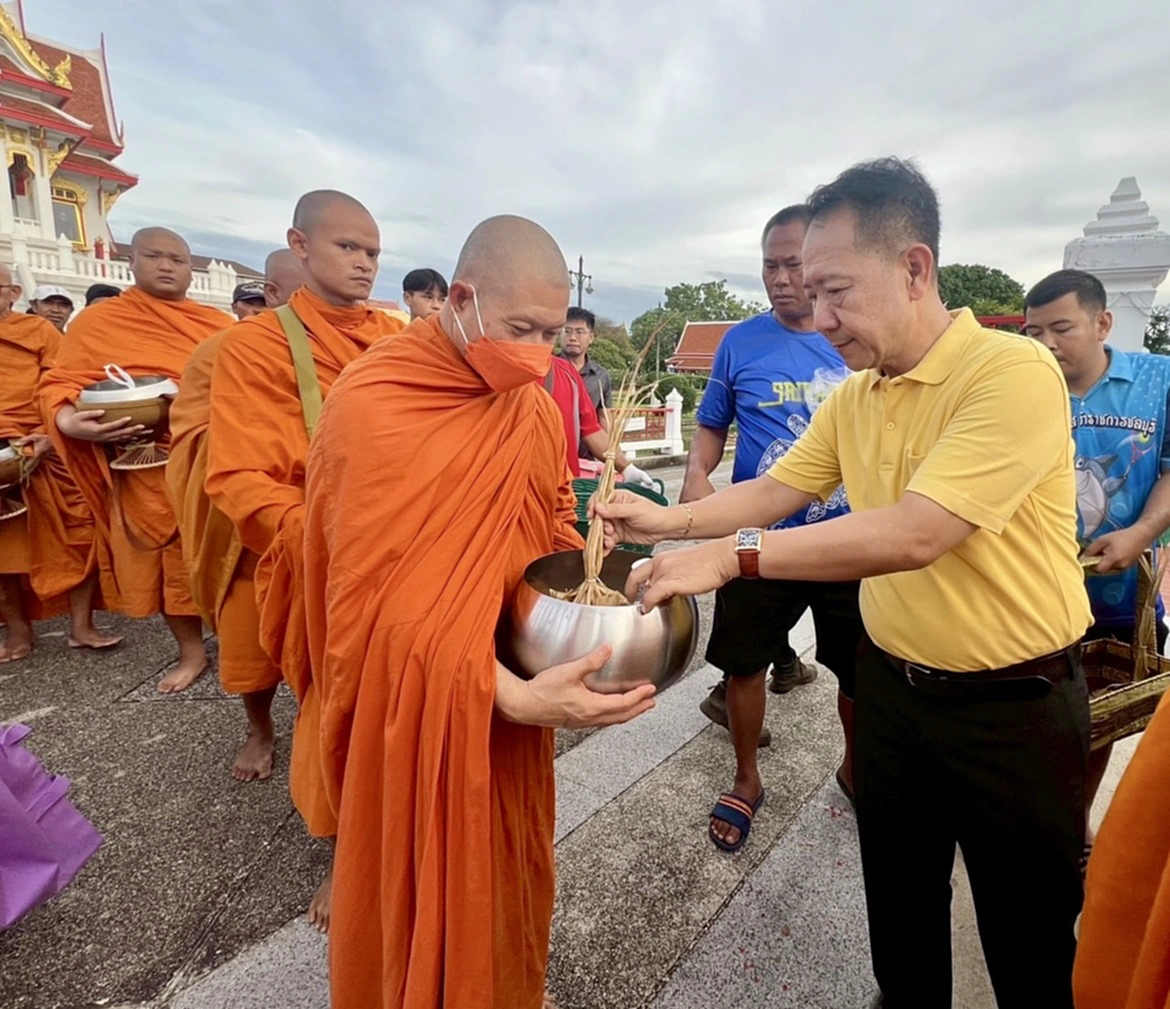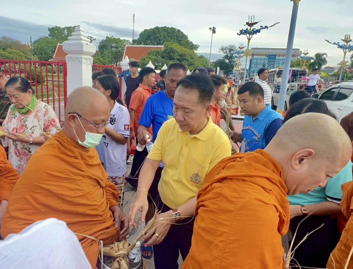 โดยพุทธศาสนิกชนจะทำบุญตักบาตรพระสงฆ์ที่ลงมาจากบันไดจำลอง เพื่อระลึกถึงการเสด็จกลับโลกมนุษย์ของพระพุทธเจ้า และการที่เทวดา มนุษย์ สัตว์โลกร่วมกันต้อนรับและถวายภัตตาหาร