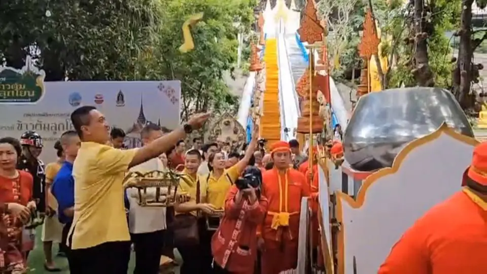 ตักบาตรเทโวโรหณะ มหัศจรรย์ข้าวต้มลูกโยนแห่งสระบุรี