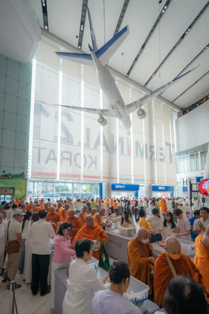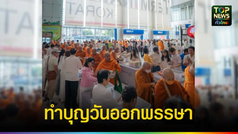 นครราชสีมา ห้างดังโคราช จัดตักบาตรพระสงฆ์ 221 รูป อลังการ ดึงคนเที่ยวห้างทำบุญวันออกพรรษา
