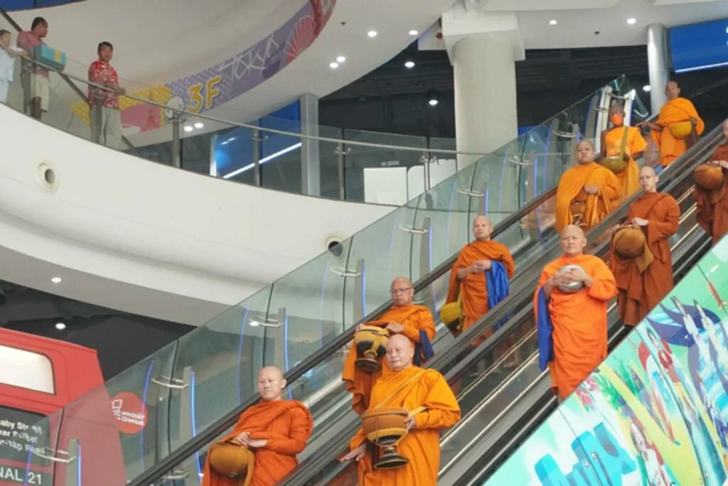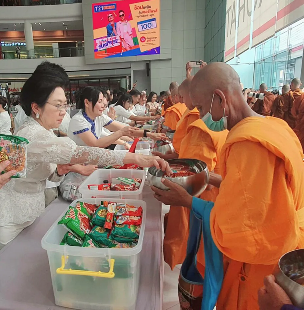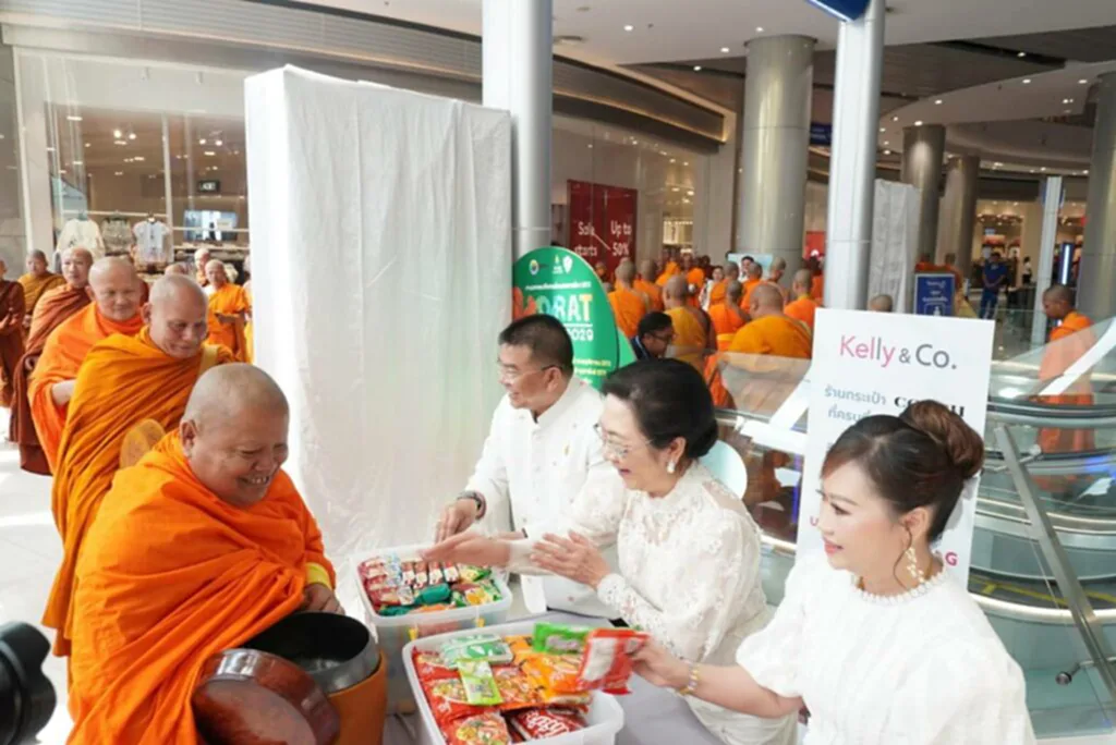 ห้างดังโคราช จัดตักบาตรพระสงฆ์ 221 รูป อลังการ ดึงคนเที่ยวห้างทำบุญวันออกพรรษา