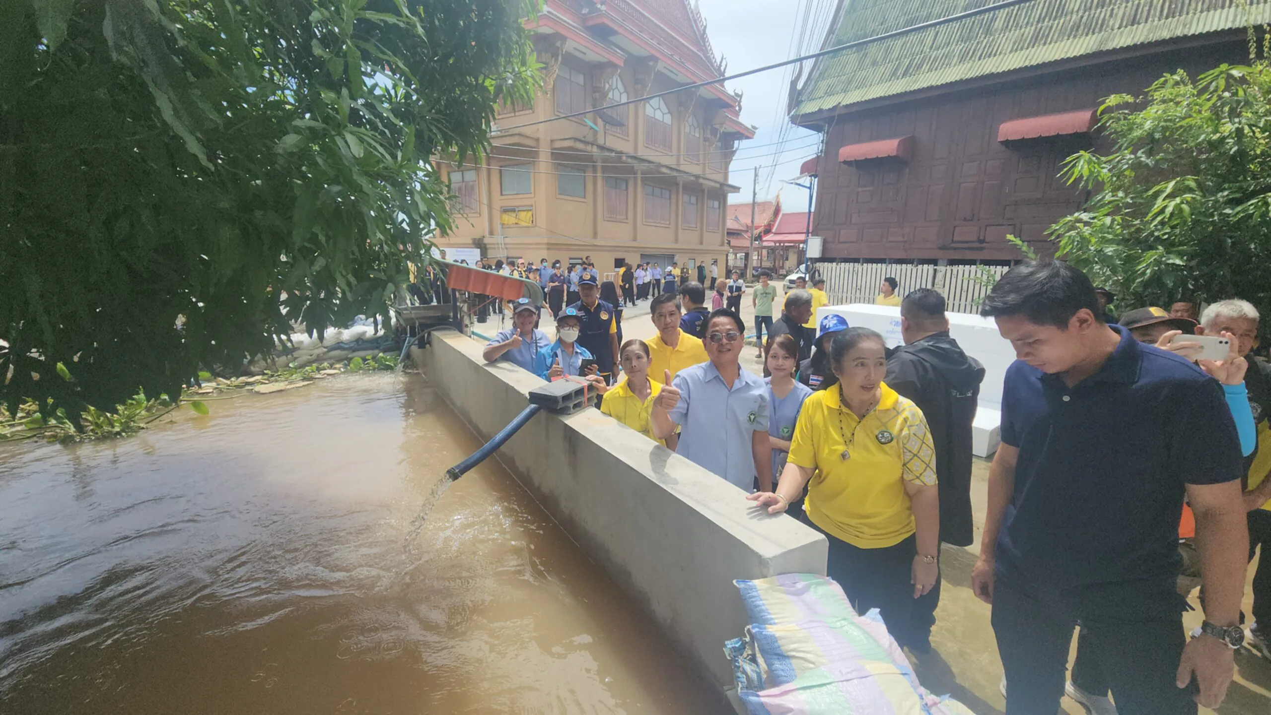 โดย พล.ต.ท.คำรณวิทย์ ธูปกระจ่าง นายก อบจ.ปทุมธานี กล่าวว่า เนื่องจากสถานการณ์น้ำเอ่อล้นริมแม่น้ำเจ้าพระยาจะเข้าท่วมขังบริเวณที่อยู่อาศัยและบ้านเรือนของประชาชนที่อยู่นอกคันกั้นน้ำ เราจึงได้มอบแพโฟมให้ เพื่อให้สามารถขนย้ายสิ่งของได้ แม้แต่ตู้เย็นก็สามารถวางได้ รถจักรยานยนต์ก็สามารถนำมาไว้บนโฟมเพื่อให้ลอยขึ้น ซึ่งพี่น้องประชาชนได้ร้องขอมาเยอะจึงรีบดำเนินการ รวมถึงได้ประสานงานกับเทศบาลท้องถิ่นที่อยู่ริมแม่น้ำ ให้รีบมารับเพื่อนำไปมอบให้พี่น้องประชาชนที่เดือดร้อน เพราะว่าเราเห็นว่าแพโฟมมีประโยชน์ต่อพี่น้องประชาชนจริง ๆ พร้อมทั้ง จัดหาเครื่องตรวจ ไฟรั่ว จากทางสถาบันเทคโนโลยีพระจอมเกล้าเจ้าคุณทหารลาดกระบัง เพื่อแจกจายให้กับ อปท. และ ประชาชนที่ถูกน้ำท่วม พร้อมฝากแจ้งประชาชนที่ใช้เรือสัญจรในแม่น้ำเจ้าพระยา ให้งดใช้ความเร็วเนื่องจากคลื่อนที่เกิดขึ้นอาจจะไปกระทบกับ ประชาชน และ กระสอบทรายที่กั้นน้ำอยู่ได้ และอยากให้ อปท.ที่มีพื้นที่ติดกับปม่น้ำเจ้าพระยา ช่วยกันดูและเรื่อง สิ่งกีดขวางการระบายน้ำ อาทิ ขยะ ผักตบชวา เป็นต้น ทางด้านสถานการณ์น้ำเราก็เฝ้าระวังอย่างใกล้ชิด โดนทาง นายนพพร ขาวขำ รองนายก อบจ.ปทุมธานี และ ร.ต.อ.ตรีลุพธ์ ธูปกระจ่าง นายกเทศมนตรีนครรังสิต ได้เฝ้าติดตามมวลน้ำด้วยดาวเทียม ซึ่งทำให้เราทราบว่าจะมีมวลน้ำฝนจาทางเหนือไหลเข้าสู้จังหวัดปทุมธานี อีกจำนวนมาก โดยเฉพาะ ช่วงวันที่ 8-13 ตุลาคมนี้ นอกจากนี้ยังเฝ้าจับตาการระบายน้ำของเขื่อนเจ้าพระยาอย่างต่อเนื่อง เมื่อวานมีการปลอยน้ำจากเขื่อนเจ้าพระยา กว่า 2,700 ลูกบาศก์เมตรต่อวินาที แต่วันนี้ ปรับลดลง เหลือ 2,400 ลูกบาศก์เมตรต่อวินาที อย่างไรก็ดีเรายังคงต้องเฝ้าติดตามเรื่องน้ำอย่างใกล้ชิด