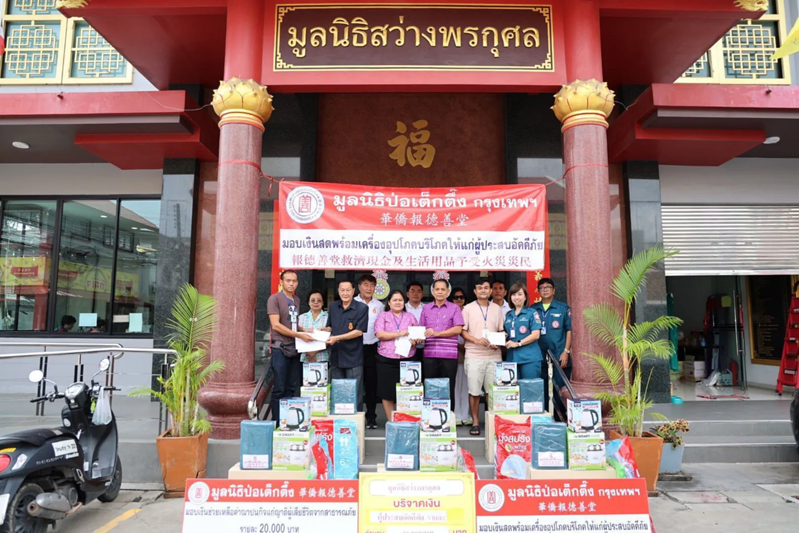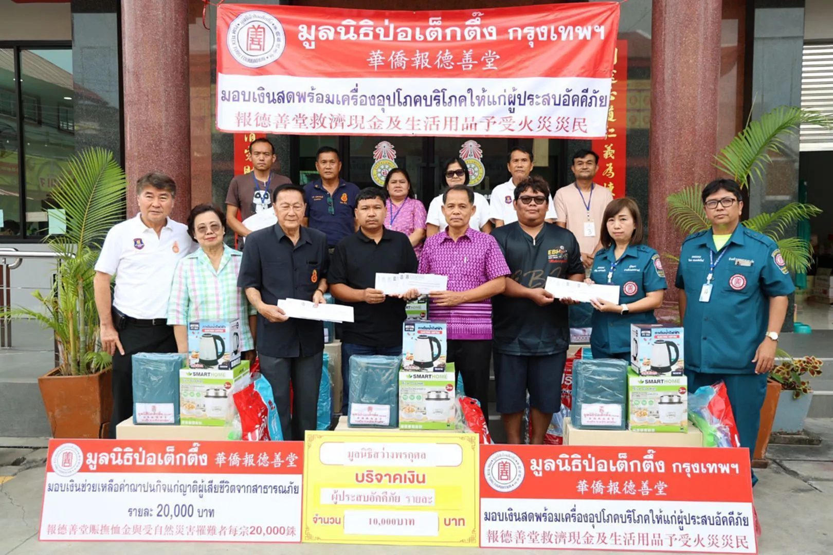 เมื่อวันที่ 7 ตุลาคม 2568 มูลนิธิป่อเต็กตึ๊ง นำโดย นางศิริพร กระจ่างหล้า ผู้จัดการฝ่ายสังคมสงเคราะห์ พร้อมด้วย นายรัชพร ประสงค์ทรัพย์ หัวหน้าแผนกสาธารณภัย นำทีมเจ้าหน้าที่แผนกสาธารณภัย ฝ่ายสังคมสงเคราะห์ ลงพื้นที่ให้ความช่วยเหลือผู้ประสบอัคคีภัยบริเวณตำบลท่าประดู่ อำเภอเมือง จังหวัดระยอง จำนวน 6 ครอบครัว 9 คน โดยมอบเงินสดคนละ 3,500 บาท พร้อมมอบเครื่องอุปโภคบริโภครายครอบครัว จำนวน 3 ชุด รายบุคคล จำนวน 3 ชุด และมอบเงินช่วยเหลือค่าฌาปนกิจแก่ครอบครัวผู้เสียชีวิตรายละ 20,000 บาท รวม 7 ราย รวมมูลค่าการช่วยเหลือทั้งสิ้น 183,500 บาท