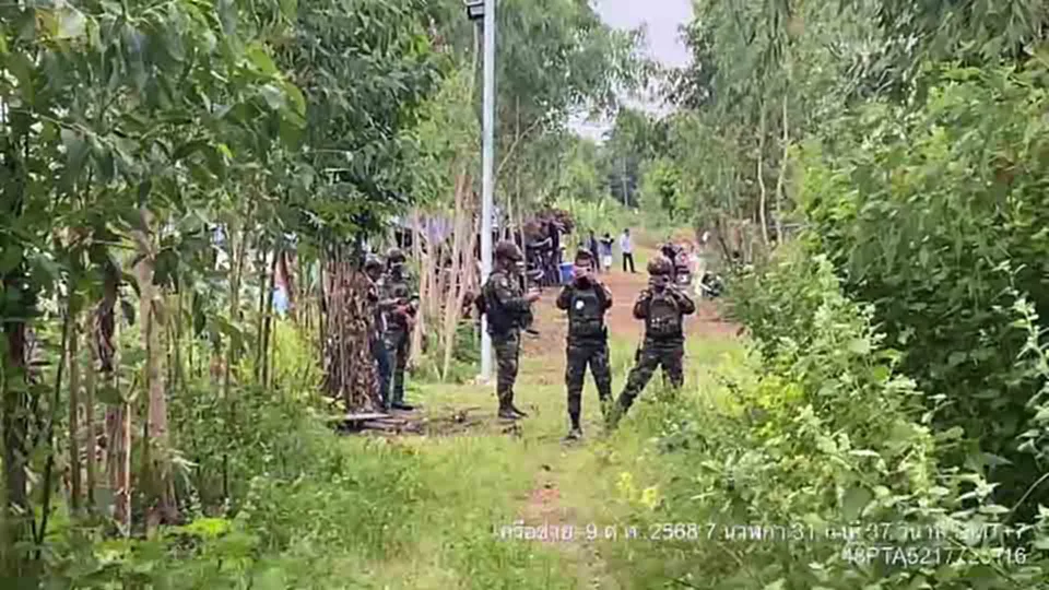 บรรยากาศในช่วงเช้า วันนี้ (9 ตุลาคม 2568) ที่บริเวณบ้านเปรยจันทร์ ตรงข้าม บ้านหนองหญ้าแก้ว ต.โคกสูง อ.โคกสูง จ.สระแก้ว และบ้านโจกเจย ตรงข้าม บ้านหนองจาน ต.โนนหมากมุ่น อ.โคกสูง จ.สระแก้ว ก่อนถึงกำหนดเส้นตาย ที่กำหนดให้ชาวกัมพูชา ที่รุกล้ำอธิปไตยไทย ออกจากพื้นที่ภายใน วันที่ 10 ตุลาคม 2568  พบว่า ภาพมุมสูง ที่เจ้าหน้าที่ฝ่ายความมั่นคง ซึ่งบินตรวจสอบความเคลื่อนไหวบริเวณแนวรั้วลวดหนามหีบเพลง และผ้าสแลนดำ ยังไม่มีความเคลื่อนไหวของมวลชนชาวกัมพูชาในพื้นที่บ้านเปรยจันทร์