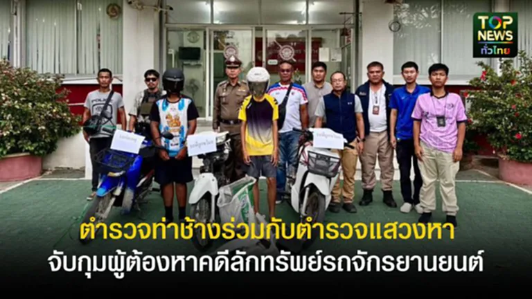 ตำรวจท่าช้างร่วมกับตำรวจแสวงหา จับกุมผู้ต้องหาคดีลักทรัพย์รถจักรยานยนต์ พร้อมของกลางหลายรายการ