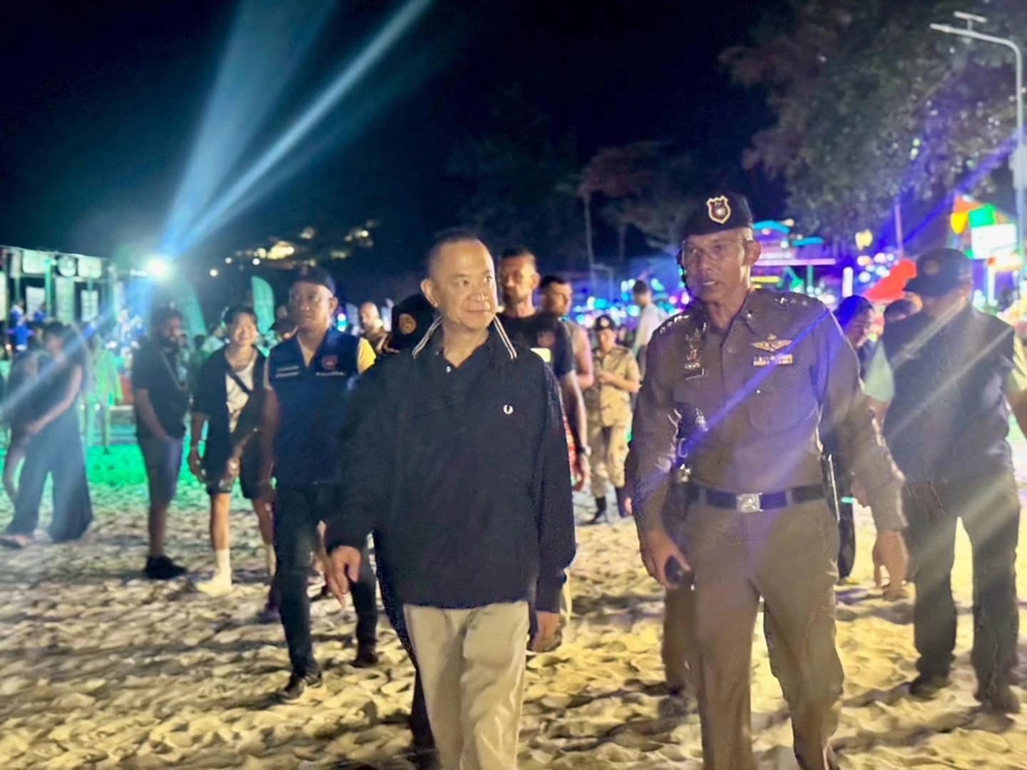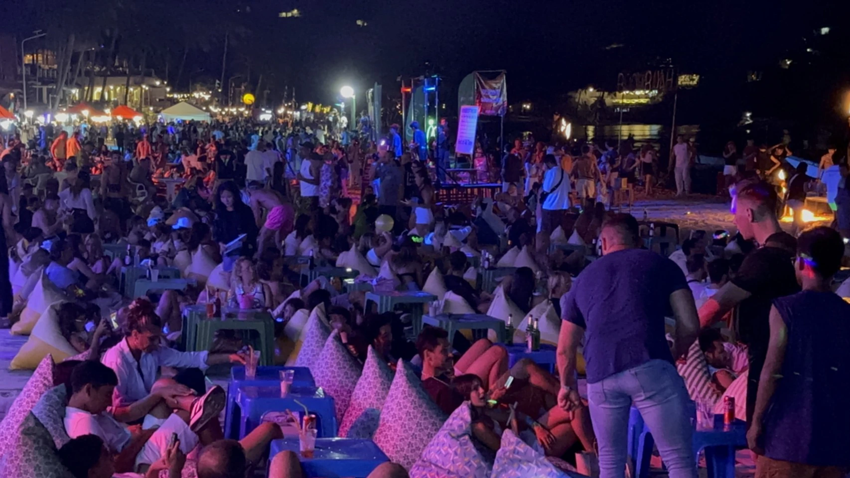 ผู้สื่อข่าวรายงานว่า เมื่อวันที่ 8 ต.ค. 2568 บรรยากาศที่ชายหาดริ้น อ.เกาะพะงัน จ.สุราษฎร์ธานี เต็มไปด้วยนักท่องเที่ยวทั้งชาวไทยและต่างชาติ ที่เดินทางมาร่วมงานฟูลมูนปาร์ตี้ เนื่องในช่วงเทศกาลออกพรรษา โดยเจ้าหน้าที่หลายหน่วยงานร่วมกันปล่อยแถวดูแลความปลอดภัย อำนวยความสะดวก และรักษาความสงบเรียบร้อยในพื้นที่จัดงาน