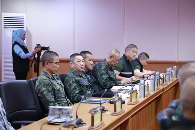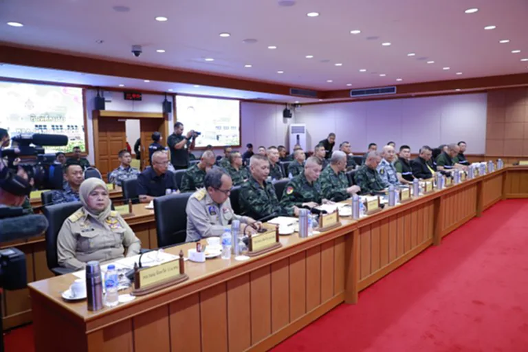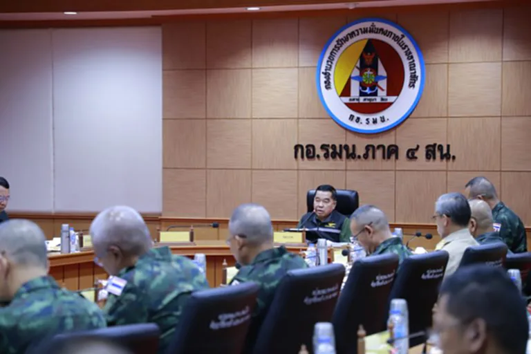 9 ตุลาคม 2568 ห้องประชุม 1 กองอำนวยการรักษาความมั่นคงภายในภาค 4 ส่วนหน้า ค่ายสิรินธร อำเภอยะรัง จังหวัดปัตตานี พลเอกณัฐพล นาคพาณิชย์ รัฐมนตรีว่าการกระทรวงกลาโหม พร้อมคณะฯ เดินทางตรวจเยี่ยมติดตามสถานการณ์ และความคืบหน้าในการปฏิบัติงานของฝ่ายความมั่นคง โดยมีพลโทนรธิป โพยนอก แม่ทัพภาคที่ 4 ผู้ว่าราชการจังหวัดในพื้นที่ 3 จังหวัดชายแดนภาคใต้ , ผู้แทนผู้ว่าราชการจังหวัดสงขลา และหัวหน้าส่วนราชการในพื้นที่ เข้าร่วมหารือย่างพร้อมเพรียง