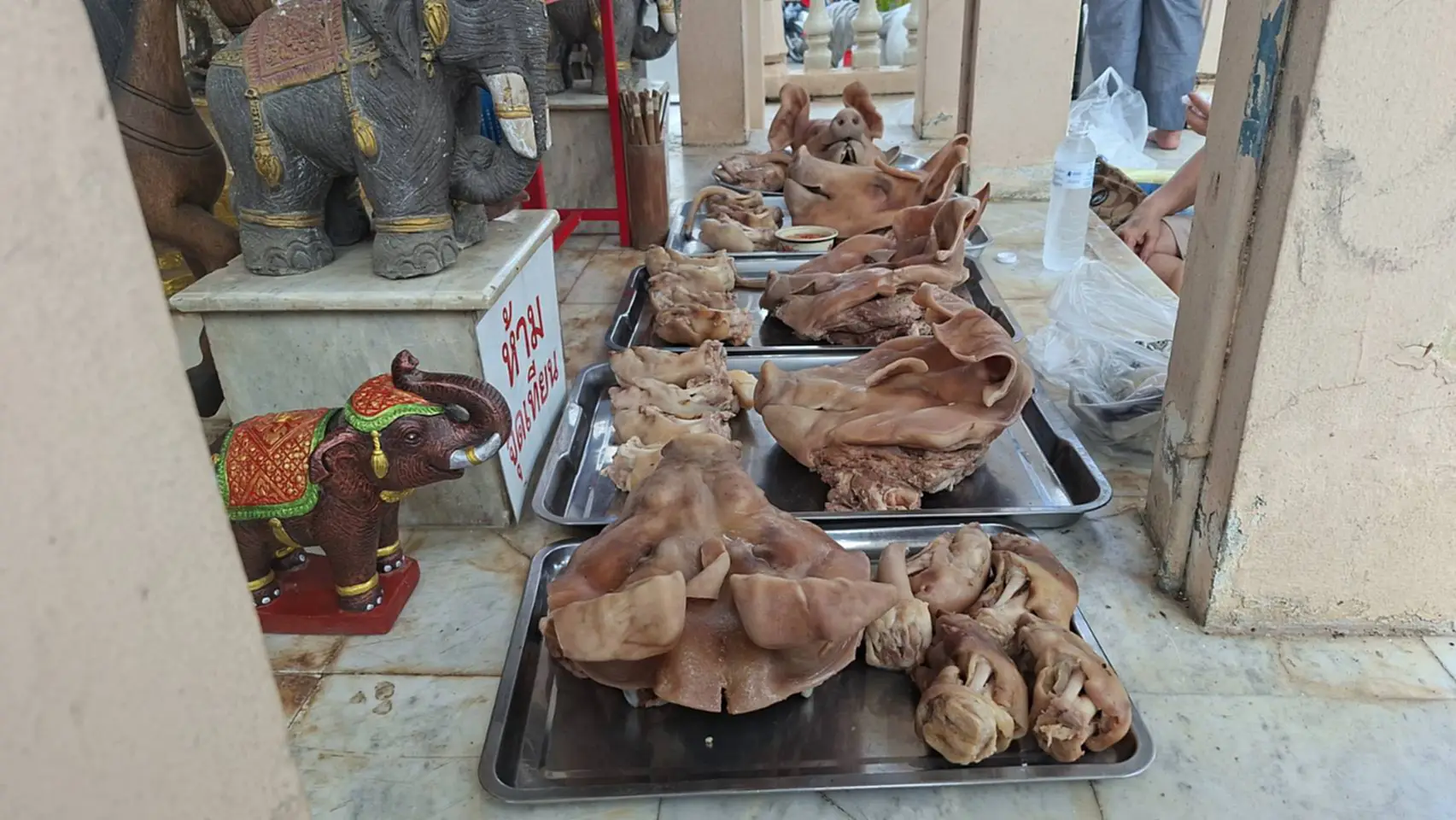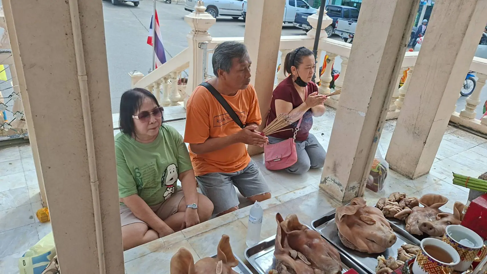 วันที่ 9 ต.ค.2568 ผู้สื่อข่าวรายงานว่า ที่ศาลท่านพ่อพระยาพิชัย วงเวียนหลังสถานีรถไฟพิชัย อ.พิชัย จ.อุตรดิตถ์ นางวิภา มีชัย อายุ 58 และญาติๆ ได้จัดหัวหมูต้ม 5 หัว อุ้งตีนหมู หางหมู น้ำจิ้ม น้ำชา พวงมาลัย มาถวายแก้บนต่อพระยาพิชัยดาบหัก ที่ตั้งเด่นสง่าอยู่ภายในศาลซึ่งรูปปั้นพระยาพิชัยที่มีลักษณะยืน มือซ้ายถือดาบและมือข้างขวาจะถือที่เป็นดาบที่หัก โดยในรูปปั้นพระยาพิชัยดาบหักจะมีการปิดทองเต็มไปหมด จากชาวบ้านข้าราชการที่มีความเคารพศรัทธา นำมาปิดเพื่อแสดงความศรีทธาต่อองค์ท่าน โดยศาลพระยาพิชัยมีลักษณะเปิดโล่งทั้ง 4 ด้าน เพื่อให้ประชาชนที่เดินผ่านไปผ่านมาหรือขับรถผ่านบริเวณนี้จะยกมือไหว้ มองรูปปั้นท่านพ่อพระยาพิชัยทุกด้านบริเวณโดยรอบศาลจะมีรูปปั้นไก่ รูปปั้นช้าง ม้า ที่ชาวบ้านได้นำมาถวายเป็นเครื่องสักการะในการแก้บนจำนวนมาก