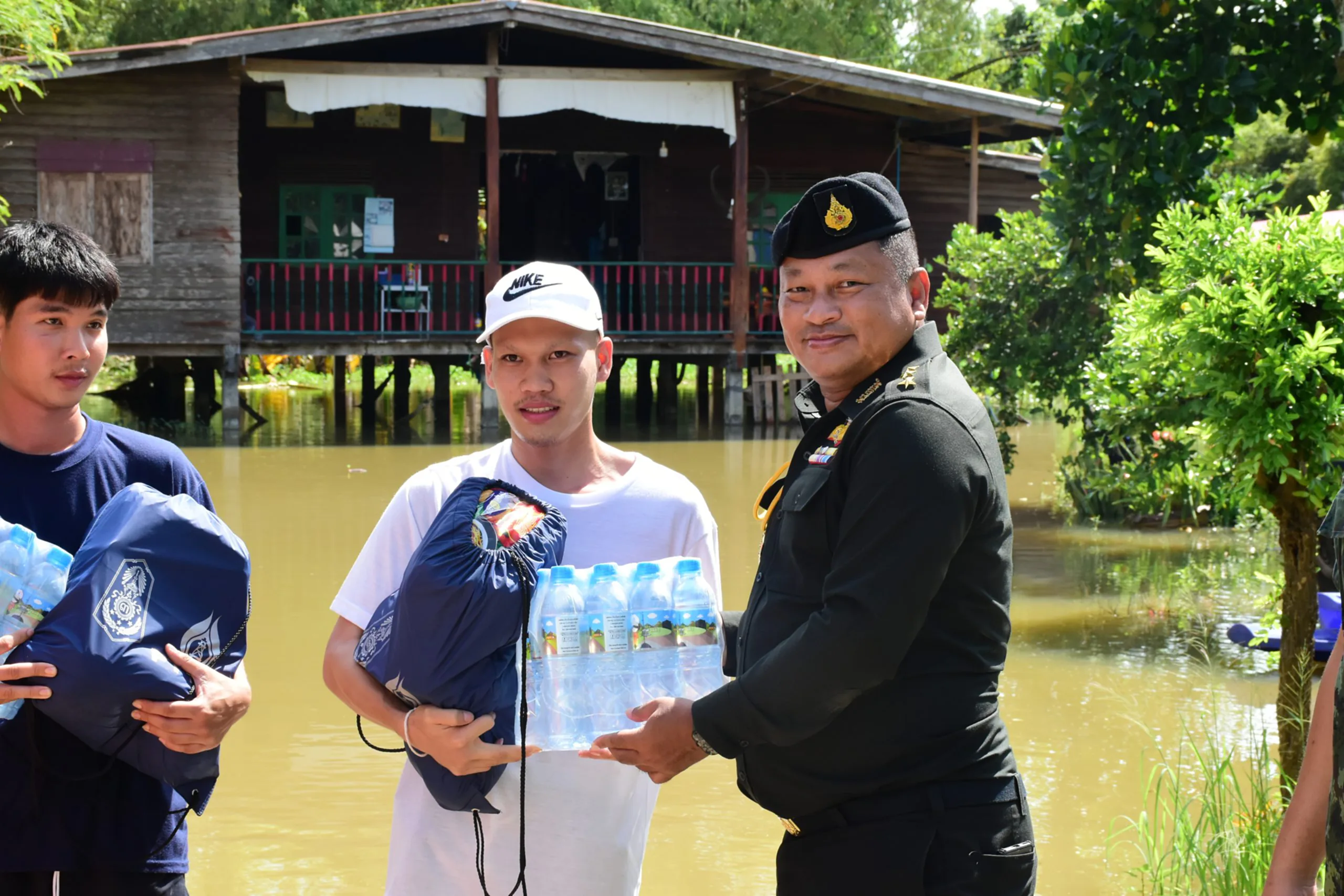 เพื่อติดตามสถานการณ์น้ำท่วม และมอบถุงยังชีพให้กับพี่น้องประชาชนที่ได้รับผลกระทบจากเหตุอุทกภัย จำนวน 150 ชุด และได้พบปะประชาชนเพื่อเป็นการสร้างขวัญกำลังใจให้ผ่านพ้นวิกฤตอันนี้ไปด้วยกัน “ทหารเป็นที่พึ่งของประชาชนในทุกโอกาส”