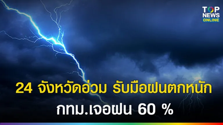 สภาพอากาศวันนี้ ทั่วไทยเจอฝนฟ้าคะนอง ตกหนักบางพื้นที่ 24 จังหวัดอ่วม หนักสุด เสี่ยงน้ำท่วมฉับพลัน กทม.เจอฝน 60 %