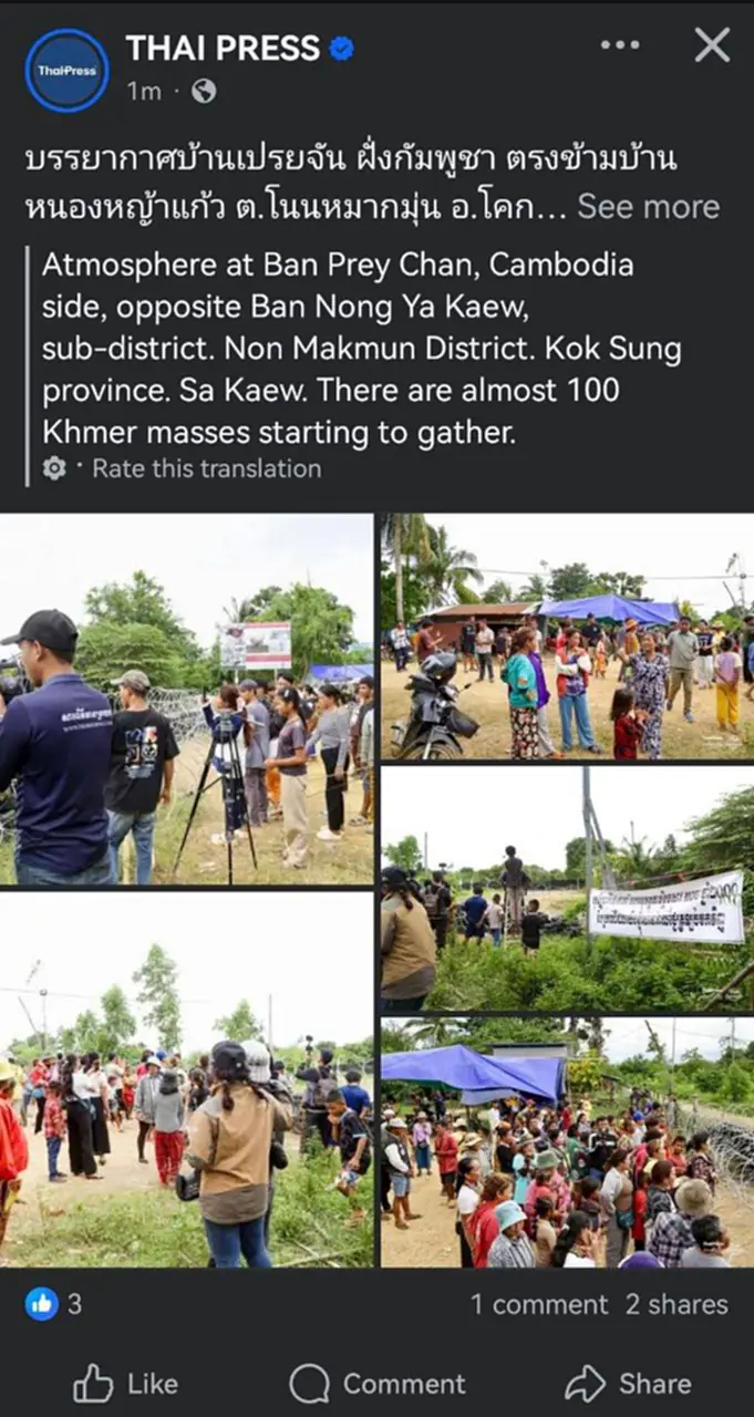 เฟรชนิวส์ สื่อเขมร โต้สื่อไทย ยืนยันชายแดนสระแก้ว ยังไม่มีชาวกัมพูชารวมตัว ชี้ภาพเก่า ซัดเจตนาร้าย