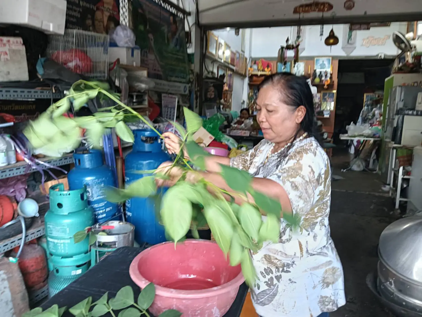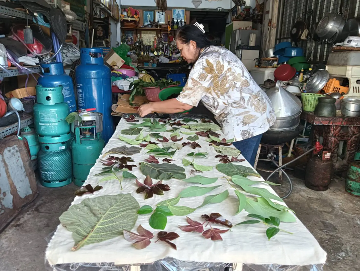 สิ่งที่สำคัญที่สุดก็คือต้องเรียนรู้และรู้จักใบไม้แต่ละชนิดว่าชนิดใหนให้สีอะไรตัวอย่างเช่น ใบสักจะให้สีแดง ใบยูคาจะให้สีเหลือง ใบสบู่เลือดจะให้สีเขียว ใบเพกาจะให้สีเหลืองส้ม และซิลเวอร์โอ๊ก เป็นต้น กระบวนการขั้นตอนแรก เตรียมผ้าซึ่งเป็นผ้าฝ้ายพื้นเมืองตามธรรมชาติมี 2 ชนิด คือผ้าฝ้ายชินมัยที่เป็นผ้าทอจากเส้นใยฝ้าย 100% และผ้าฝ้ายหนังกบ ต้องไม่กัดสีคือเป็นผ้าฝ้ายตามธรรมชาติเลย ถ้าเป็นผ้าที่กัดสีแล้วเวลาพิมพ์ สี่ของใบไม้จะไม่ค่อยติดหรือติดก็จะจางลายยใบไม้แต่ละชนิดจะไม่โดเด่นสวยงาม ซึ่งผ้าฝ้ายทั้ง 2 ชนิดนี้จะแตกต่างกัน ผ้าฝ้ายชินมัยเนื้อผ้าจะหนาเหมาะในการทำหมวกหรือทำกระเป๋า ส่วนผ้าฝ้ายหนังกบจะบางและเบาเหมาะกับการตัดเสื้อกางเกงถ้าใครชอบธรรมชาติบอกได้เลยตัวนี้ตอบโจทย์เพราะไม่มีสารเคมีเข้ามาเจือปน ขั้นตอนต่อมาคือการเอาผ้าที่จะนำมาพิมพ์ไปแช่ในน้ำกัดสนิมทิ้งไว้ประมาณ 2 ชั่วโมงนำออกไปใช้งานได้เลย ซึ่งน้ำกัดสนิมนี้ตนเองก็คิดและปรับปรุงขึ้นเป็นเทคนิคในการเรียนรู้มาจะประกอบไปด้วยปูนชาวสารส้มเกร็ด น้ำส้มสายชู หกทิ้งไว้ในภาชนะหรือถังที่เตรียมไว้เวลาต้องการใช้ก็ตักเอามาใส่ถังในการแช่ผ้า