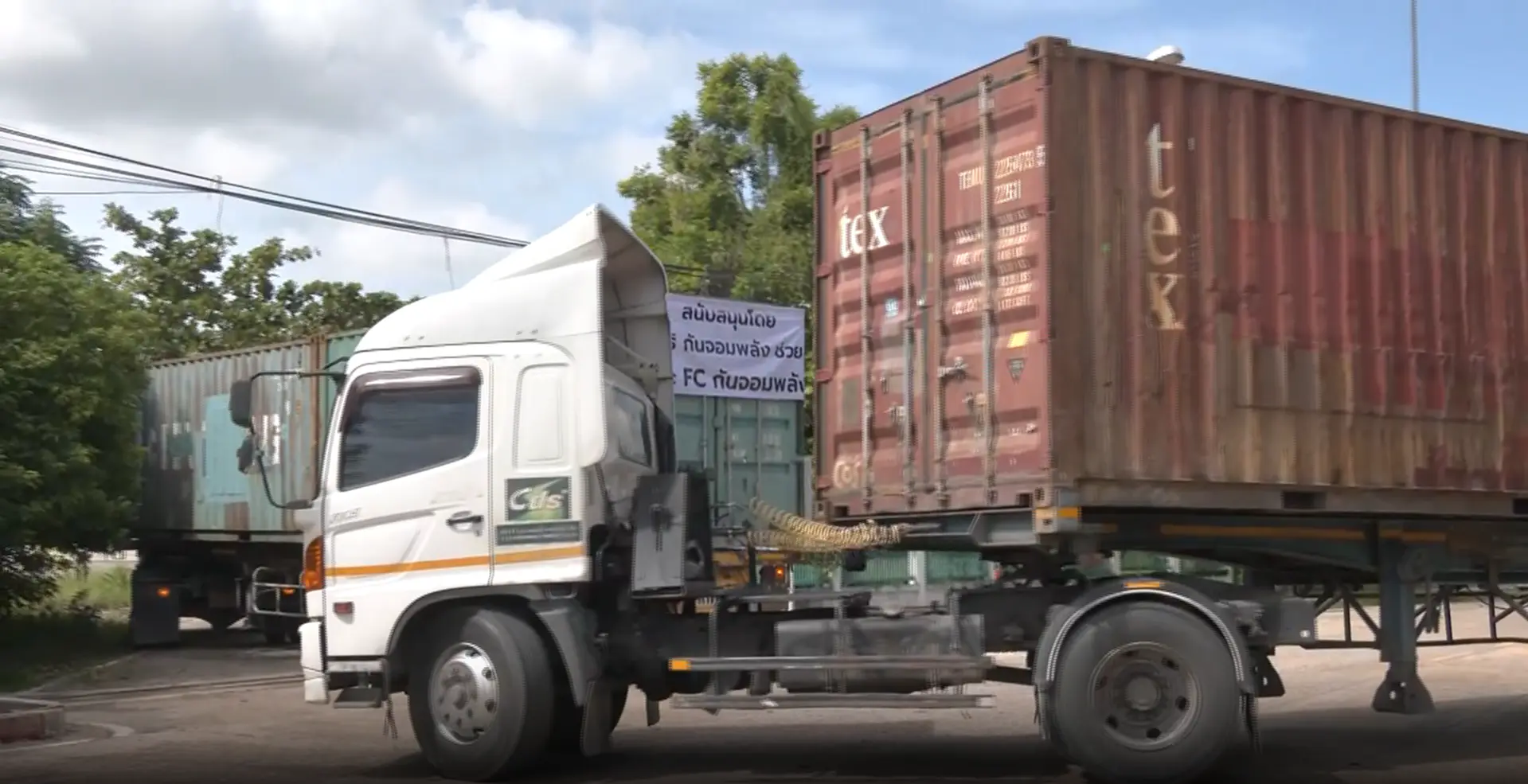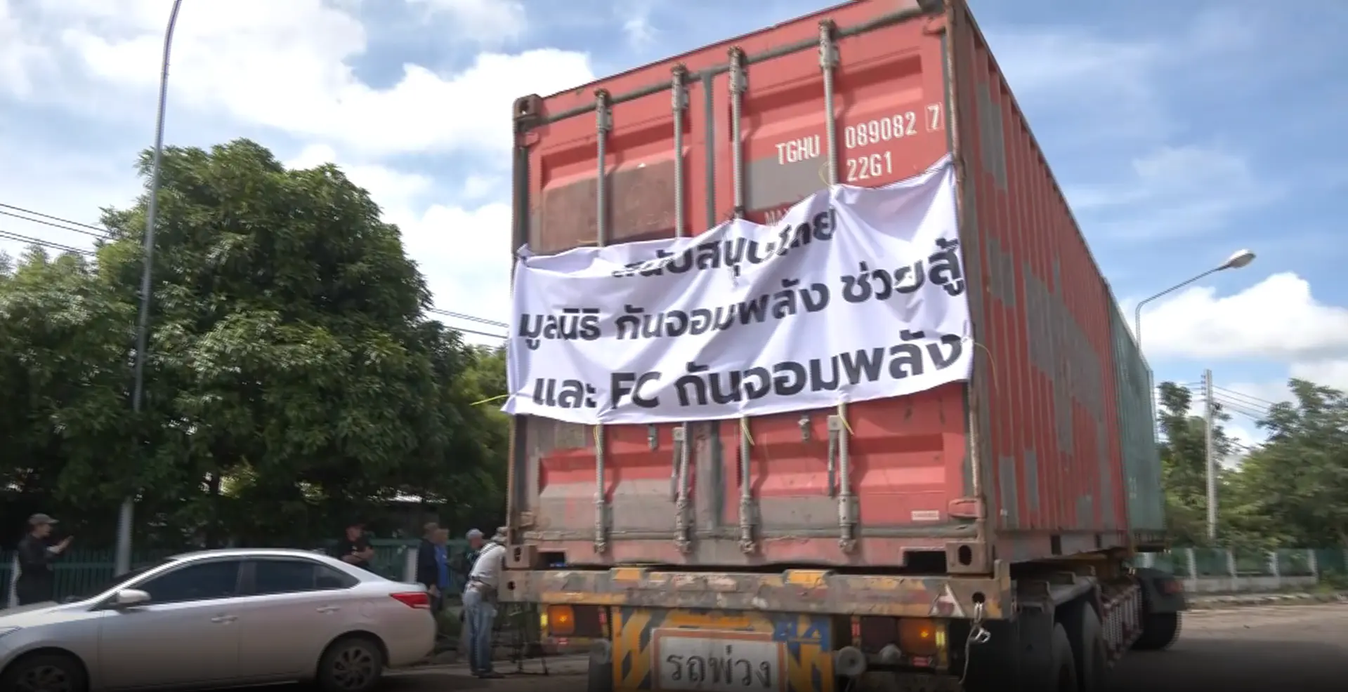 กัน จอมพลัง บอกว่า ตอนนี้ตู้คอนเทนเนอร์ล็อตแรก เดินทางถึงจังหวัดพื้นที่จังหวัดสระแก้วแล้ว วันนี้จำนวนกว่า 40 ตู้ ในวันพรุ่งนี้จะมาอีก 20 ตู้ ใช้รถขนทั้งหมดจำนวน 20 คัน โดยจะเอาตู้เพื่อให้ FC กัน จอมพลัง เขียนให้กำลังใจทหารไทย ส่วนอีกฝั่งของตู้คอนเทนเนอร์ จะให้เขียนฝากไปถึงทหารเขมร และผู้นำเขมร