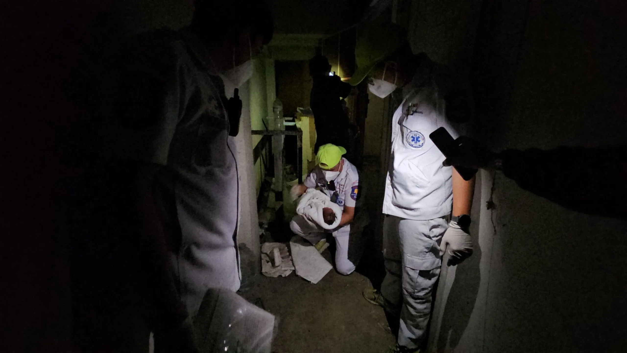 นางสาวนาง (นามสมมติ) อายุ 56 ปี ชาวไทยใหญ่ ผู้พักอาศัยในหอพัก เปิดเผยว่า เวลาประมาณ 07.00 น. ได้ยินเสียงทารกร้องดังสนั่นทั่วตึก รู้สึกตกใจเพราะหอพักไม่มีใครตั้งครรภ์หรือเลี้ยงเด็ก จึงออกตามหาเสียงร้อง จนพบเด็กนอนอยู่ตรงทางเดินชั้นลอยในความมืด เมื่อใช้ไฟฉายส่องดูถึงกับช็อก รีบแจ้งเจ้าหน้าที่ให้มาช่วยเหลือ