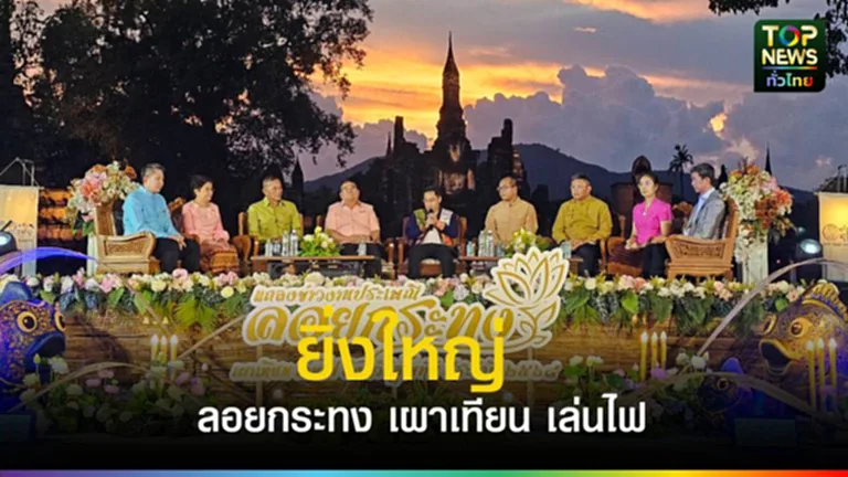 สุโขทัย ชวนเที่ยว งานประเพณีลอยกระทง เผาเทียน เล่นไฟ จังหวัดสุโขทัย ประจำปี 2568
