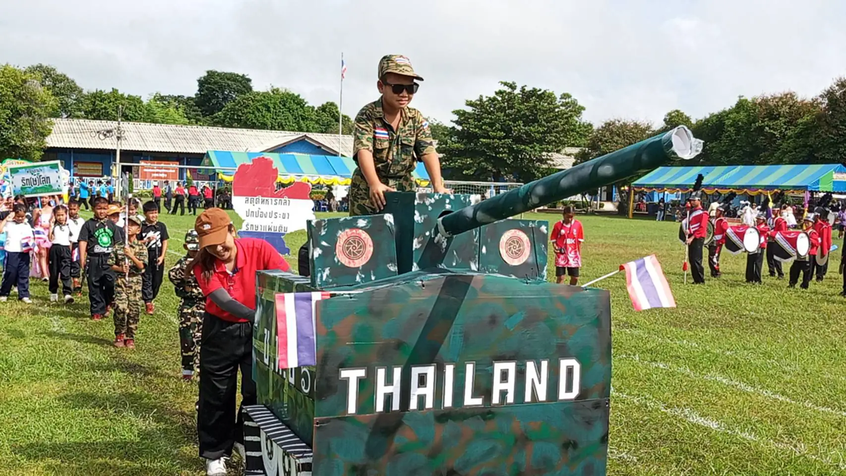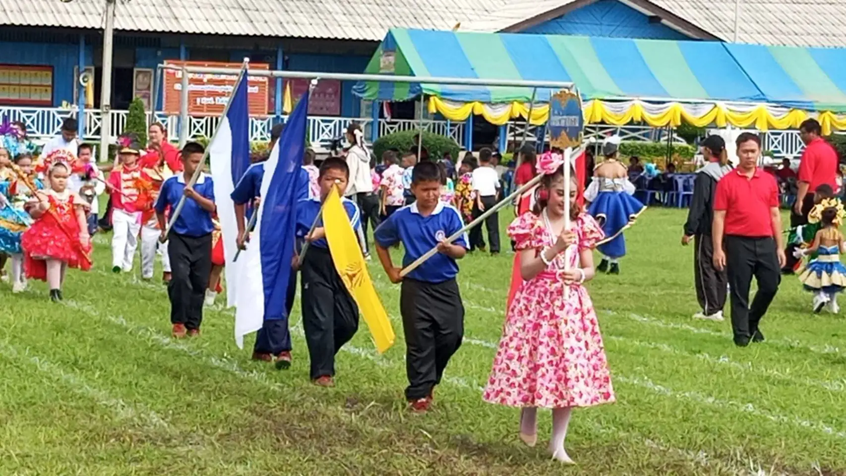 ก่อนพิธีเปิดได้มี ขบวนพาเหรดนักกีฬาและกองเชียร์ เดินขบวนอย่างสวยงามจากบริเวณ โลตัสสาขาท่าข้าม มายังสนามกีฬาโรงเรียนชุมชนวัดกลางท่าข้าม ซึ่งตลอดเส้นทางได้รับความร่วมมือและการดูแลความปลอดภัยจาก เจ้าหน้าที่ตำรวจสถานีตำรวจภูธรค่ายบางระจัน ทำให้การเดินขบวนเป็นไปอย่างเรียบร้อย สร้างความประทับใจแก่ผู้ร่วมชมเป็นอย่างมาก