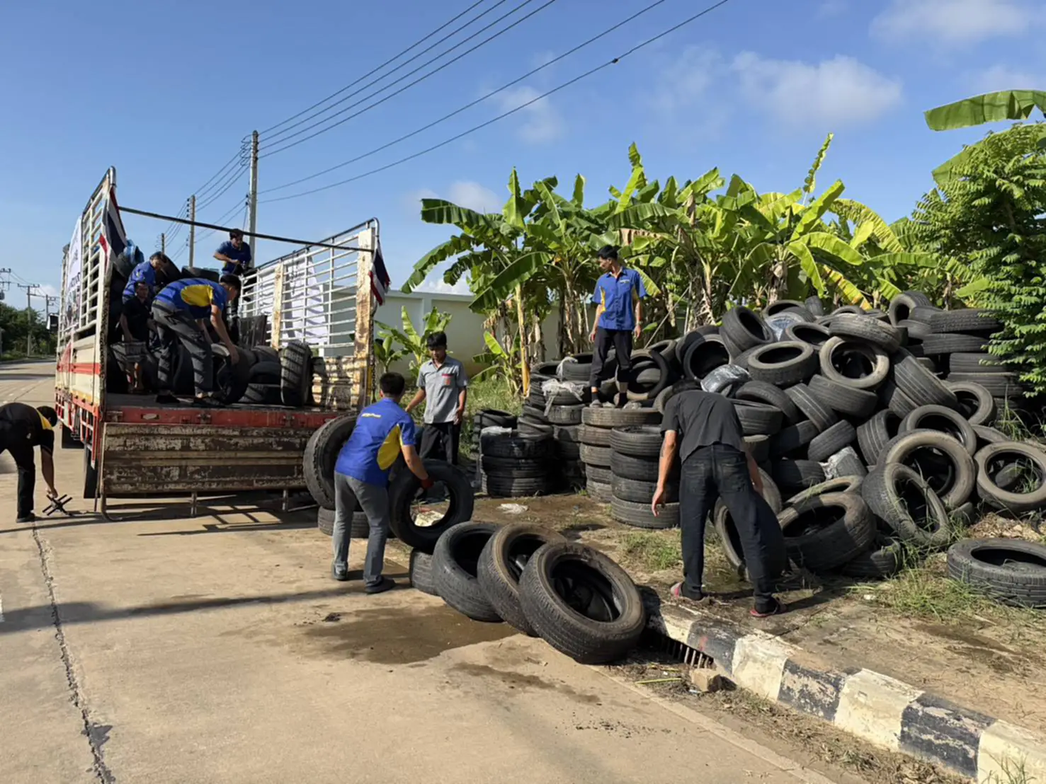 ทางตนเองจึงได้รวบรวมยางรถยนต์เก่าทั้งที่ลูกค้ามาเปลี่ยนยางที่ร้านและนำมาร่วมนำใส่รถบรรทุกหกล้อเพื่อนำไปส่งให้กับมูลนิธิกันจอมพลังช่วยสู้ที่แนวชายแดน
