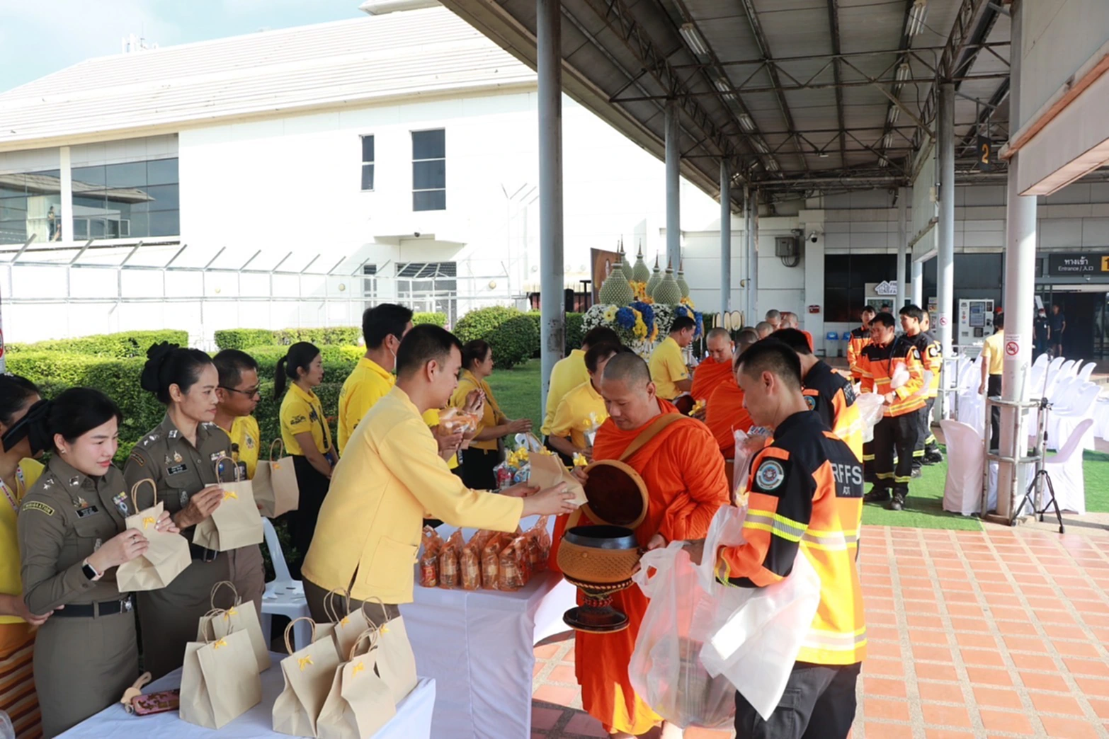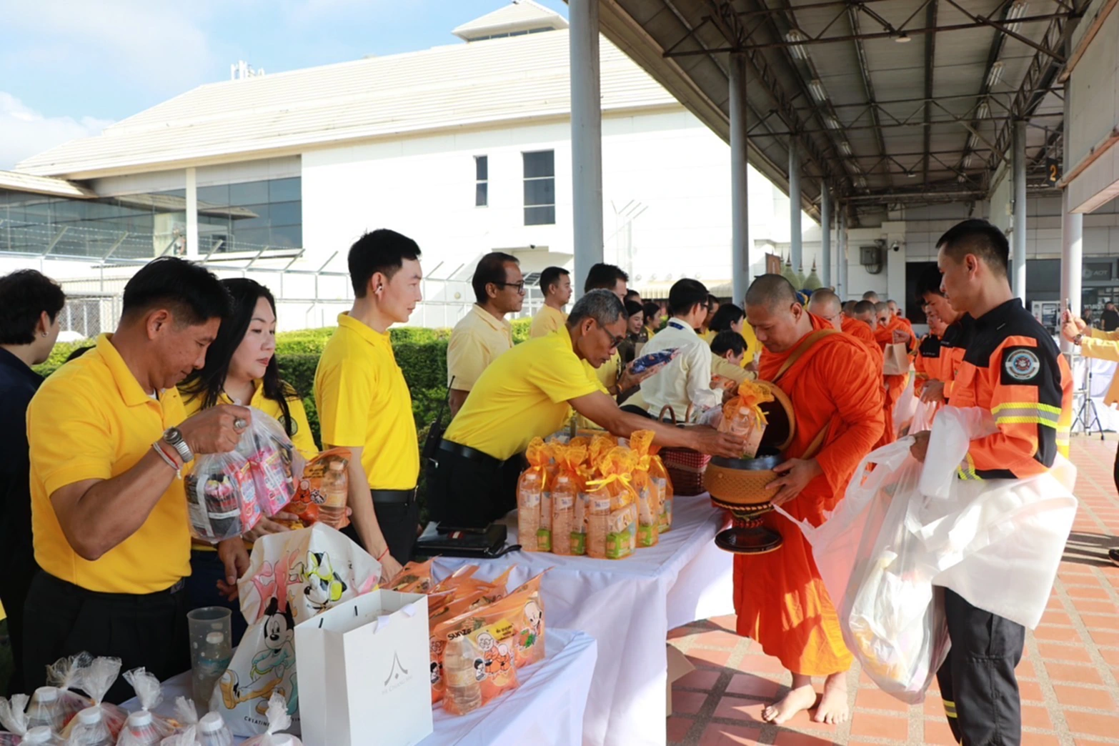 วันที่ 10 ตุลาคม 2568 นายการันต์ ธนกุลจีรพัฒน์ ผู้อำนวยการท่าอากาศยานเชียงใหม่ พร้อมด้วยผู้บริหาร พนักงาน ลูกจ้าง และครอบครัวท่าอากาศยานเชียงใหม่ รวมทั้งส่วนราชการและผู้ปฏิบัติงาน ณ ท่าอากาศยานเชียงใหม่ ร่วมพิธีทำบุญตักบาตรข้าวสารอาหารแห้ง เพื่อถวายเป็นพระราชกุศลและน้อมรำลึกในพระมหากรุณาธิคุณ เนื่องในโอกาสวันคล้ายวันสวรรคต พระบาทสมเด็จพระบรมชนกาธิเบศร มหาภูมิพลอดุลยเดชมหาราช บรมนาถบพิตร “วันนวมินทรมหาราช” 13 ตุลาคม 2568 โดยได้รับเมตตาจากพระสงฆ์จำนวน 10 รูป จากวัดสวนดอก พระอารามหลวง มาประกอบพิธีทำบุญและรับบิณฑบาต ณ บริเวณลานจอดรถบัส ด้านทิศใต้อาคารผู้โดยสารระหว่างประเทศ