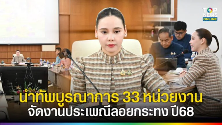 วันที่ 10 ตุลาคม 2568 ณ ศูนย์การประชุมกระทรวงวัฒนธรรม ชั้น 8 อาคารวัฒนธรรมวิศิษฏ์ – กระทรวงวัฒนธรรม โดยกรมส่งเสริมวัฒนธรรมจัดการประชุมคณะกรรมการบูรณาการเพื่อกำหนดแนวทางการจัดงานประเพณีลอยกระทง พุทธศักราช 2568 ร่วมกับ 33 หน่วยงาน ได้แก่ กระทรวงวัฒนธรรม กระทรวงมหาดไทย กระทรวงสาธารณสุข กระทรวงศึกษาธิการ กระทรวงการอุดมศึกษา วิทยาศาสตร์ วิจัยและนวัตกรรม กระทรวงการท่องเที่ยวและกีฬา กระทรวงทรัพยากรธรรมชาติและสิ่งแวดล้อม กรุงเทพมหานคร สำนักงานตำรวจแห่งชาติ กองบังคับการตำรวจจราจร กรมการศาสนา กรมศิลปากร สำนักงานศิลปวัฒนธรรมร่วมสมัย กรมการขนส่งทางบก กรมควบคุมโรค กรมประชาสัมพันธ์ กรมป้องกันและบรรเทาสาธารณภัย กรมส่งเสริมการปกครองท้องถิ่น กรมการปกครอง กรมสารนิเทศ กรมการท่องเที่ยว กรมการเปลี่ยนแปลงสภาพภูมิอากาศและสิ่งแวดล้อม การท่องเที่ยวแห่งประเทศไทย สำนักวัฒนธรรม กีฬา การท่องเที่ยว สำนักการระบายน้ำ สำนักป้องกันและบรรเทาสาธาณภัย สำนักสิ่งแวดล้อม (สังกัดกรุงเทพมหานคร) สภาวัฒนธรรมกรุงเทพมหานคร สำนักงานพระพุทธศาสนาแห่งชาติ สำนักงานนโยบายและแผนทรัพยากรธรรมชาติและสิ่งแวดล้อม กองทุนพัฒนาสื่อปลอดภัยและสร้างสรรค์ กองทุนสนับสนุนการสร้างเสริมสุขภาพ และมูลนิธิเมาไม่ขับ โดยมีวัตถุประสงค์เพื่อบูรณาการแนวทางความร่วมมือการดำเนินงานของทุกภาคส่วนในการจัดทำมาตรการเพื่อสืบสานคุณค่าอันดีงามของประเพณีลอยกระทง ให้เด็ก เยาวชน ประชาชนทั่วไป รวมถึงนักท่องเที่ยวชาวต่างชาติได้รับทราบแนวทางที่ถูกต้อง เหมาะสม และสามารถนำไปปฏิบัติในช่วงเทศกาลประเพณีลอยกระทง